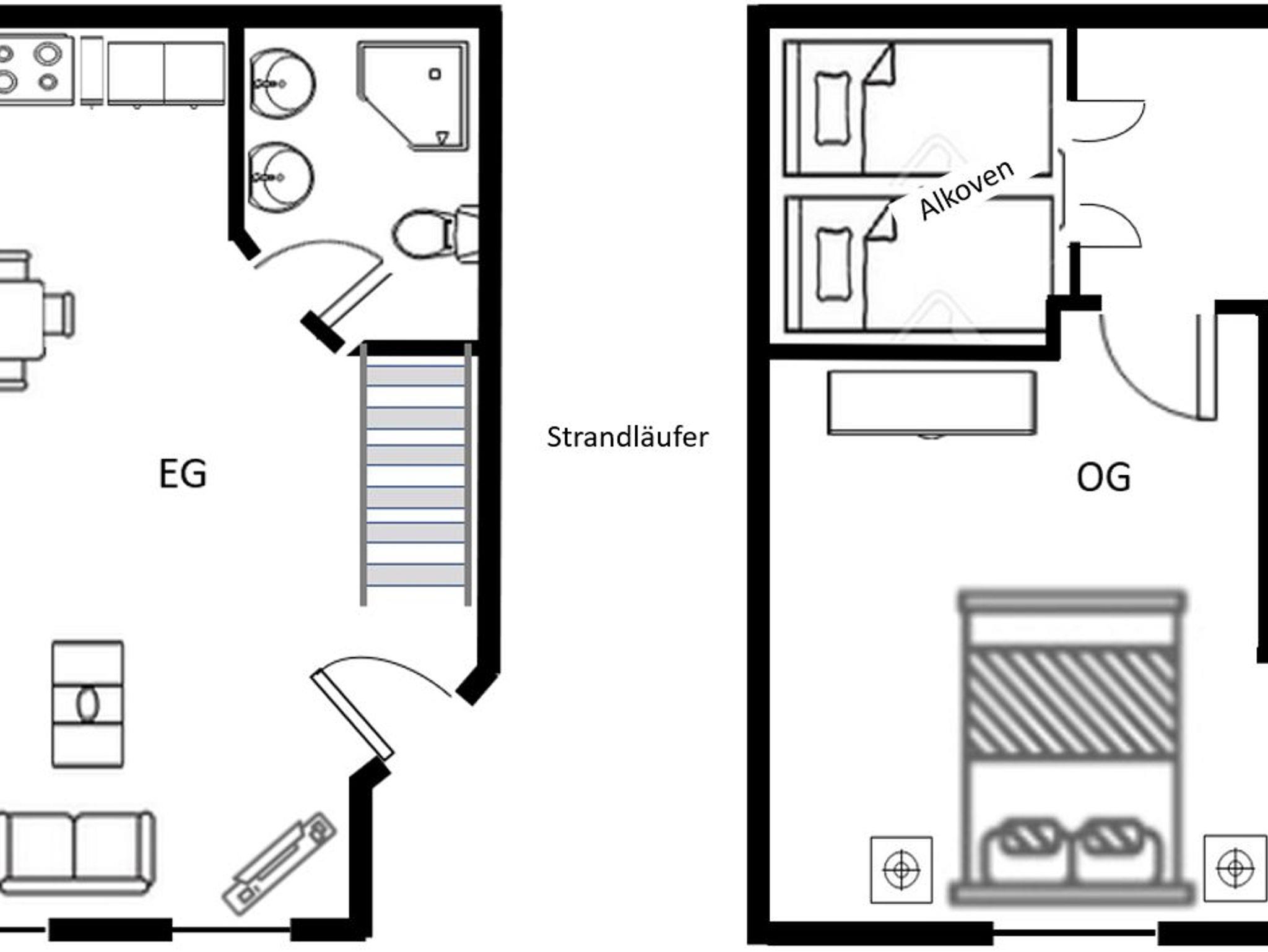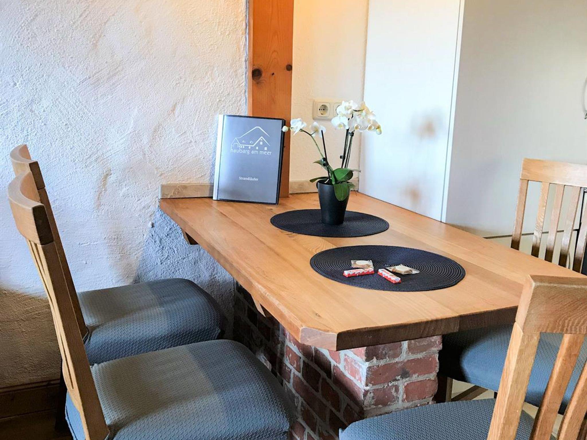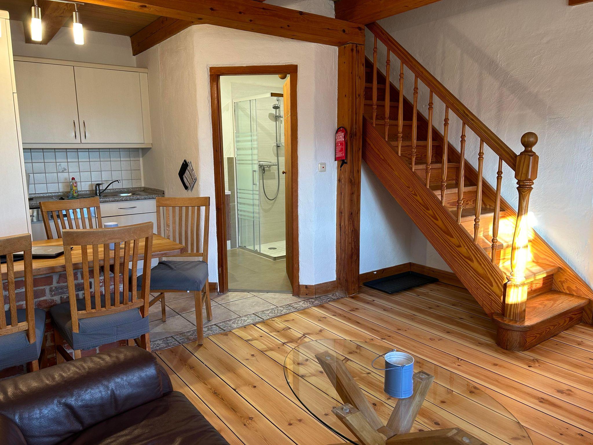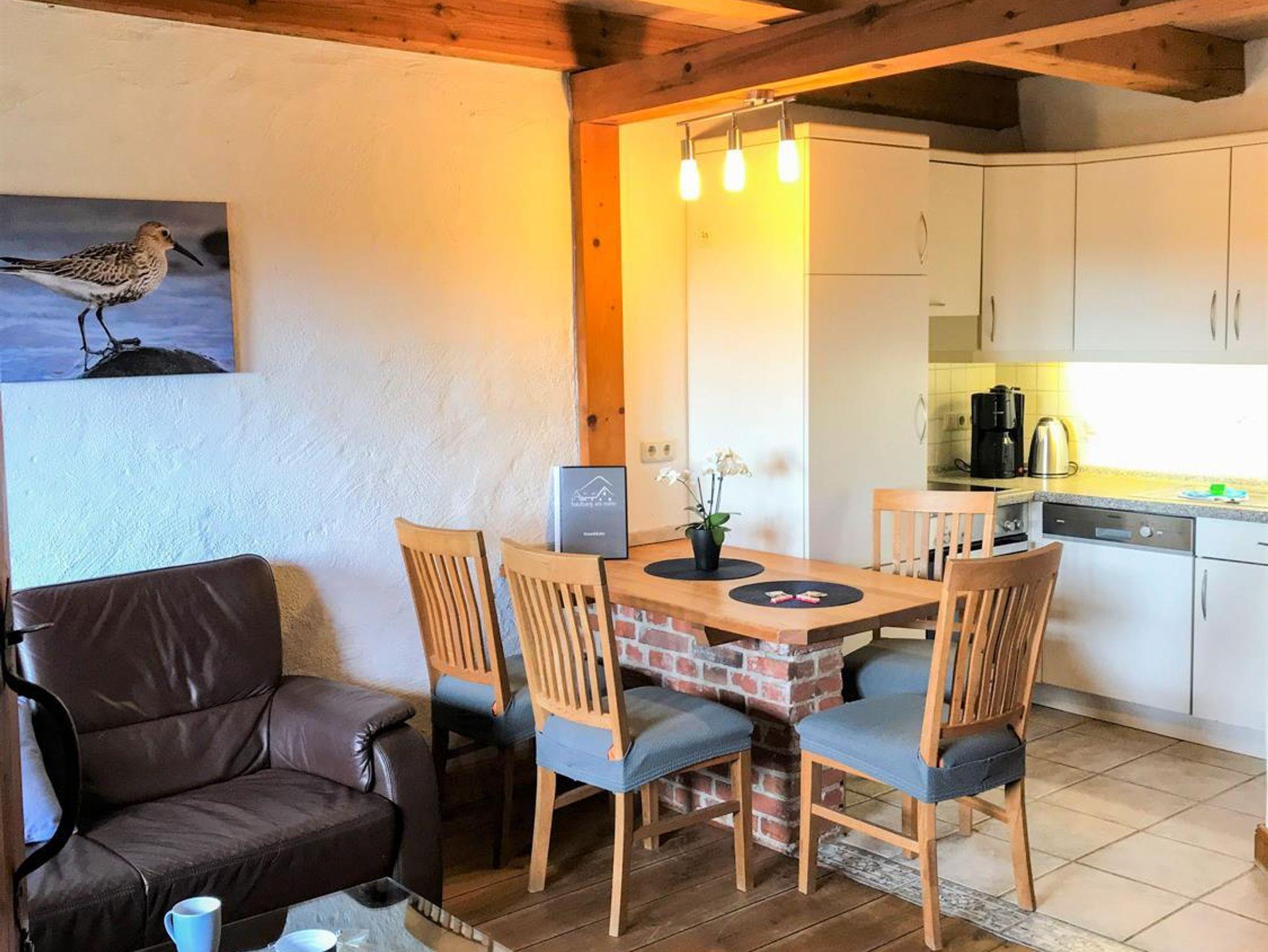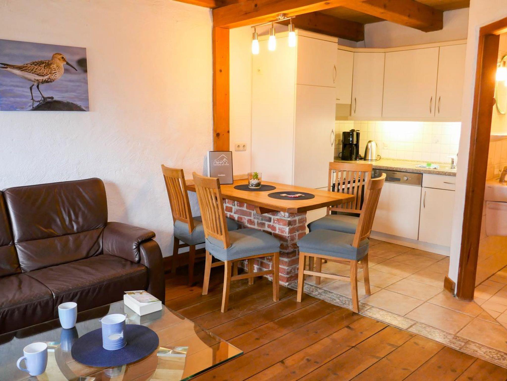 Die Ferienwohnung Strandläufer im haubarg am meer bietet mit einem offenen Wohn-und Essbereich mit Küche und Bad im Erdgeschoß einen schönen Raum zum Verweilen. In 2023 wurde das Bad komplett neu gestaltet. Die Wohnung wurde Anfang 2025 renoviert. In der ersten Etage geht es dann zur Nachtruhe in das Schlafzimmer mit Doppelbett für die Erwachsenen und außerhalb des Schalfzimmers für die Kinder in einen Alkoven (Nachbildung einer historischen Doppelalkove mit zwei normal großen Matratzen).