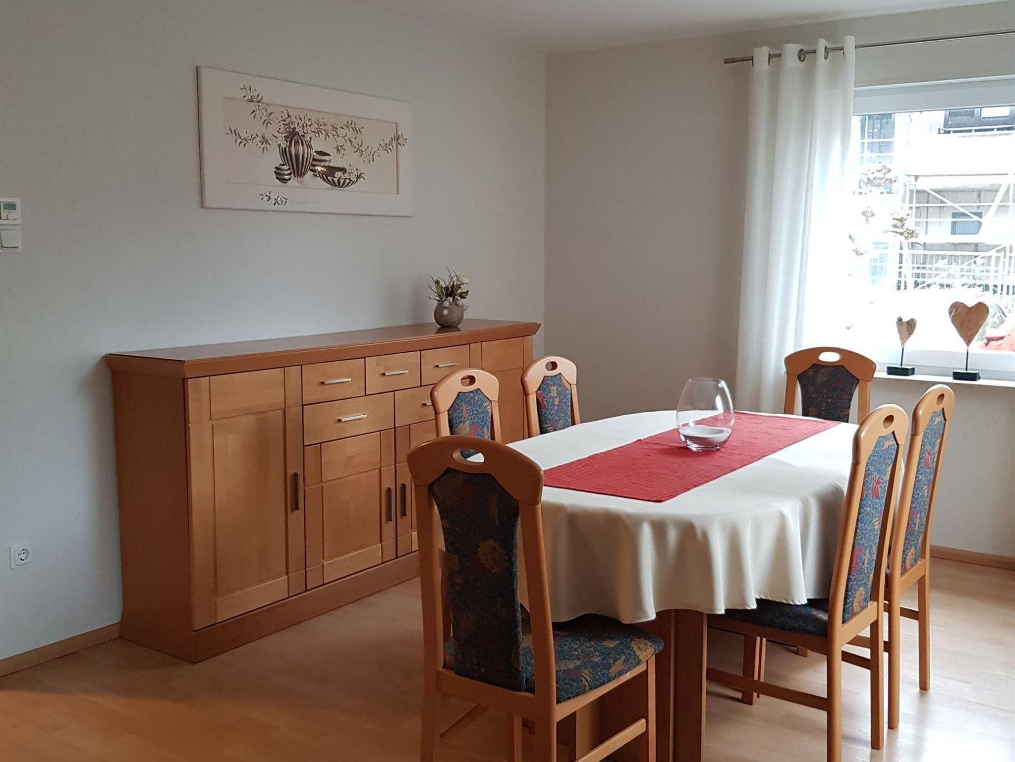 Unsere 70 qm² große Ferienwohnung befindet sich im Erdgeschoß des Hauses und liegt zentral in der Ortsmitte. In den Jahren 2020 und 2021 wurden einige Modernisierungsmaßnahmen durchgeführt. Die Wohnung besteht aus einer zum Flur hin offenen Küche mit Essbereich, einem Schlafzimmer mit Doppelbett, einem großen Wohn- und Essbereich sowie einem Bad mit begehbarer Dusche.-
