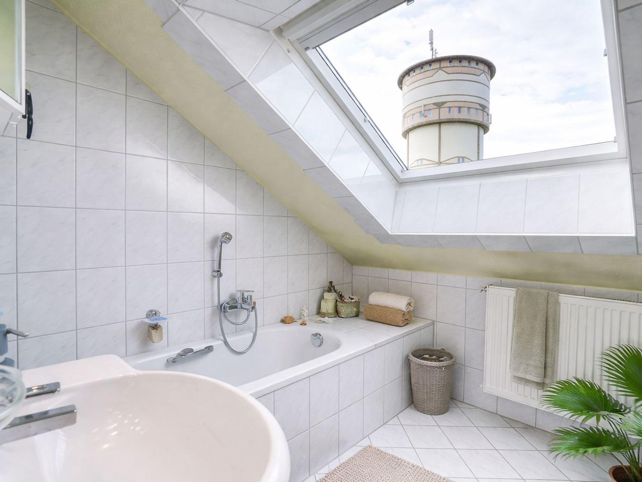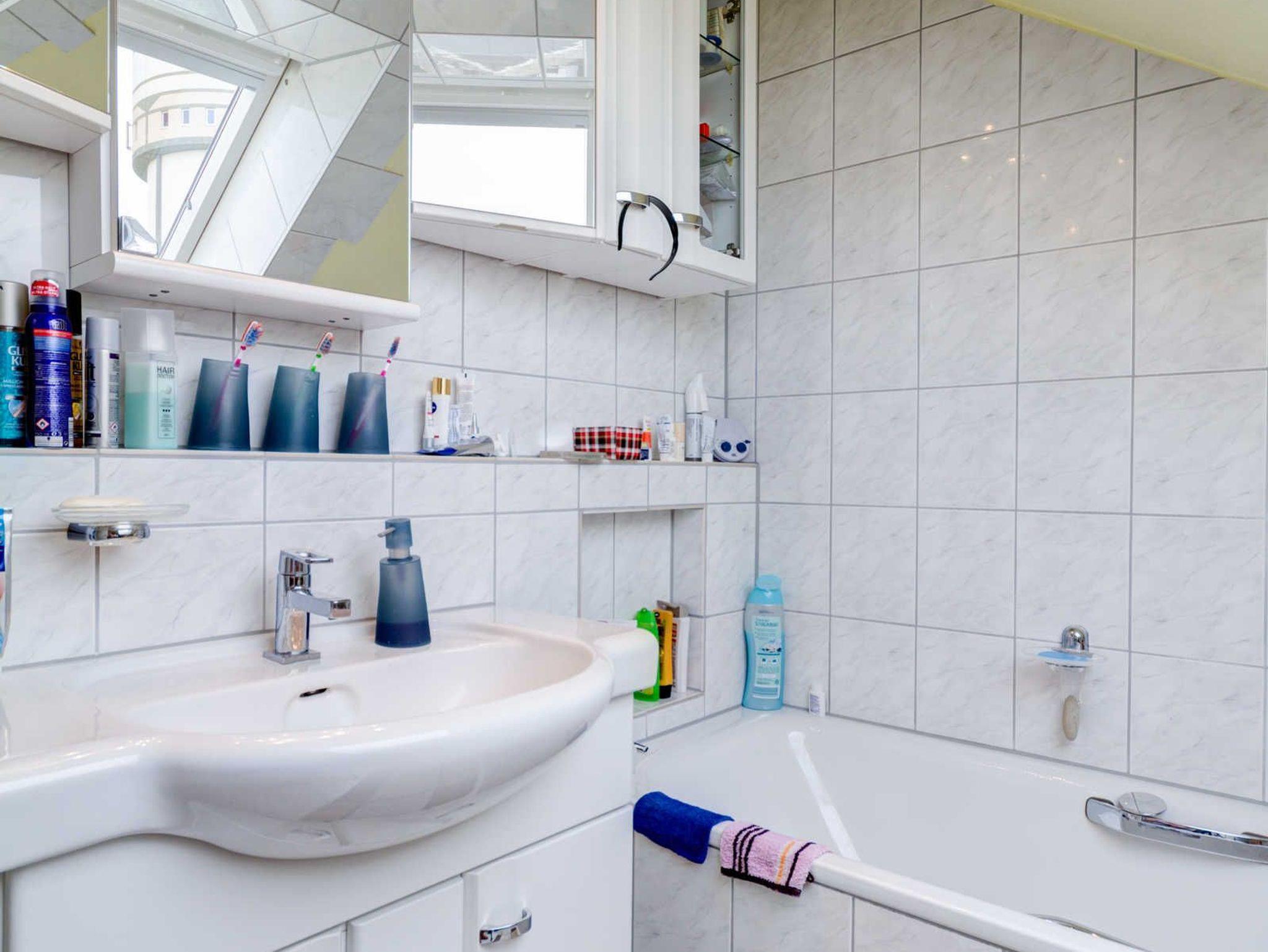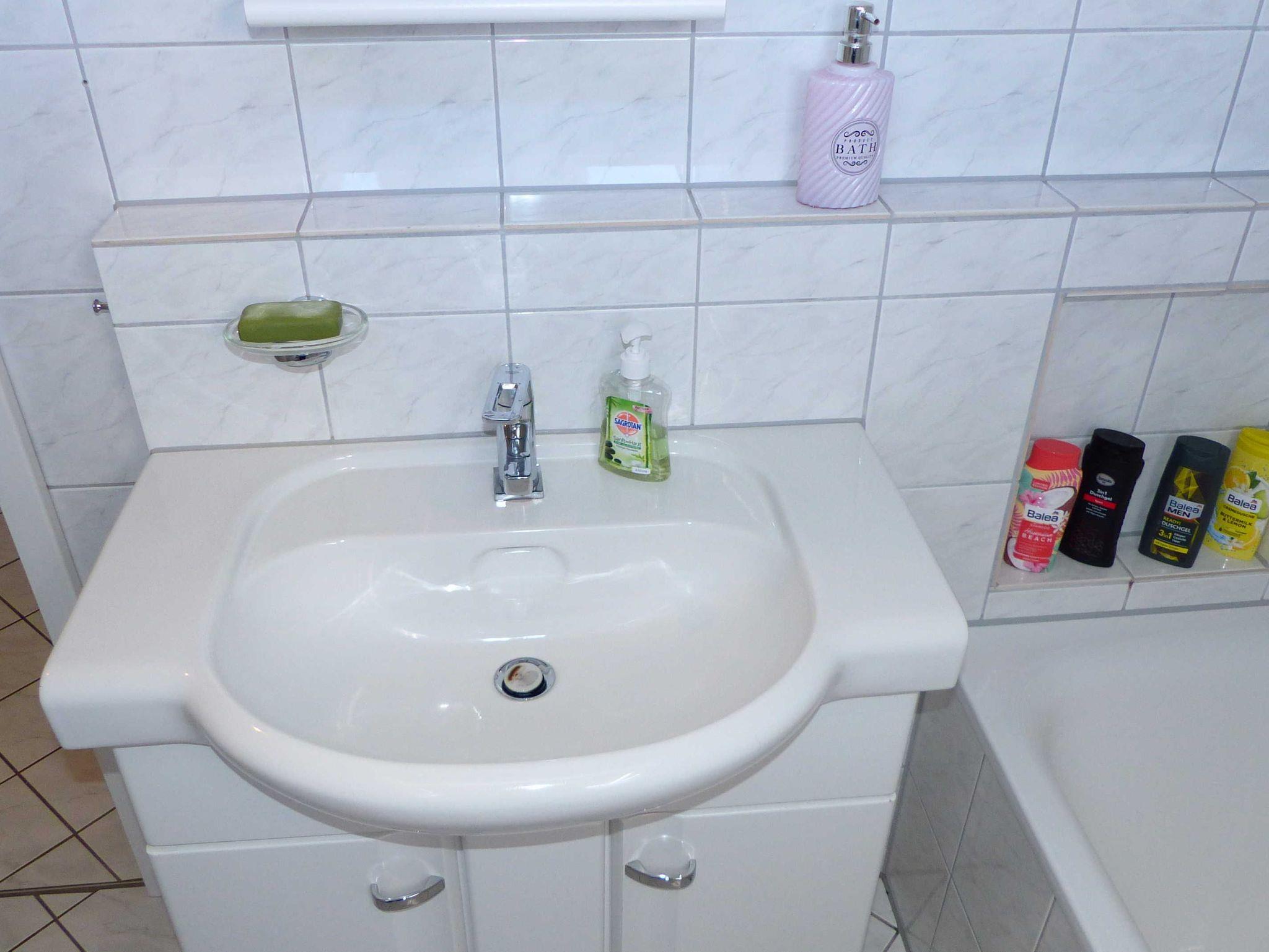 Das Badezimmer ist geschmackvoll eingerichtet und verfügt über eine Badewanne mit integrierter Dusche. Handtücher sowie alle wichtigen Alltagsutensilien stehen Ihnen selbstverständlich zur Verfügung ankommen, auspacken, wohlfühlen.
