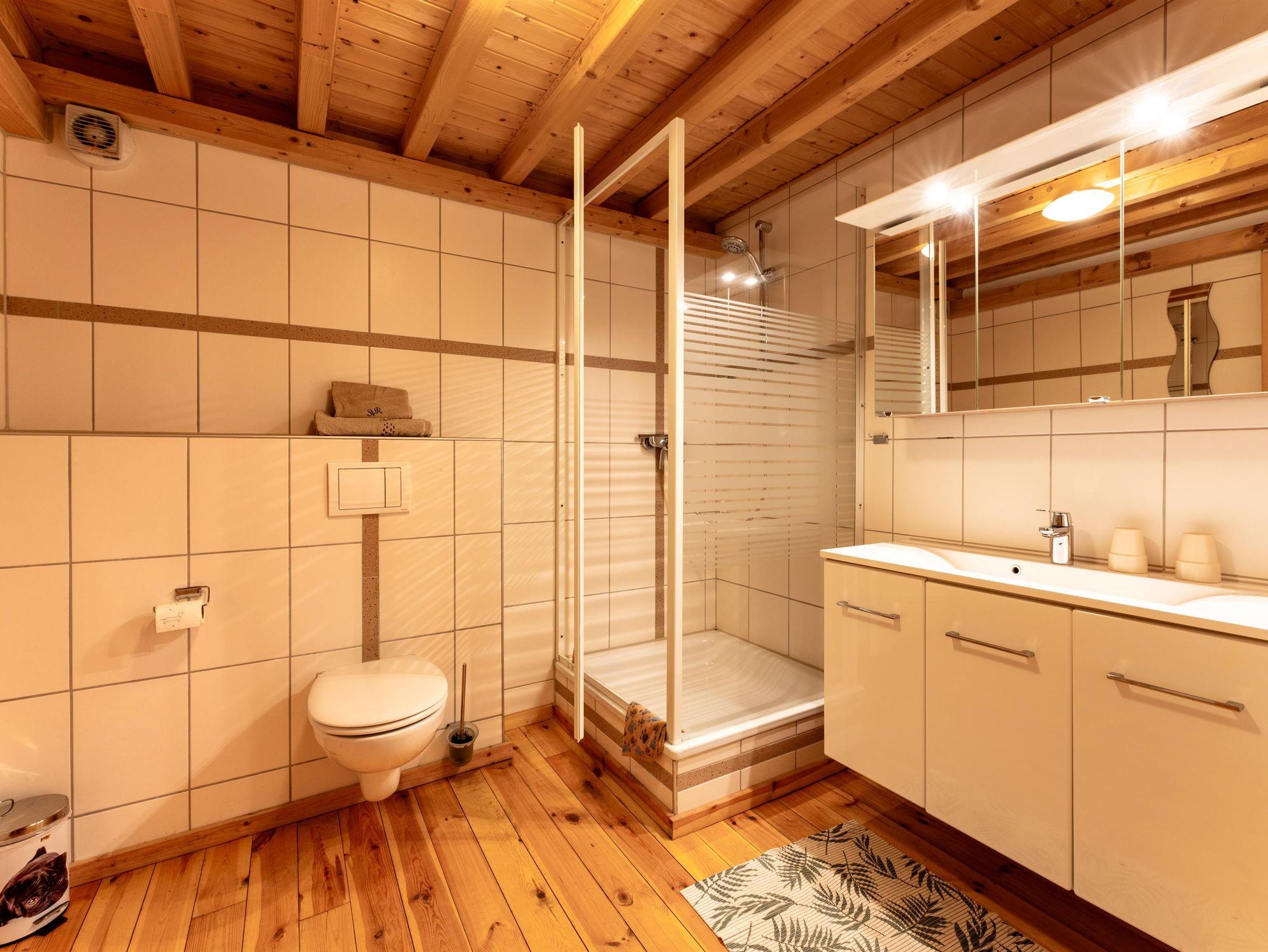 Die 60 m² große Wohnung besteht aus einem Wohnraum mit gemütlicher Couch sowie einem modernen Flatscreen-TV, einem Essbereich und einer offenen Küche, einem großzügigen Duschbad mit WC sowie einer Schlafgalerie mit einem Doppelbett (1,40 x 2,00m) und einem Twin-Bett (2 x 0,8 x 2,00m).