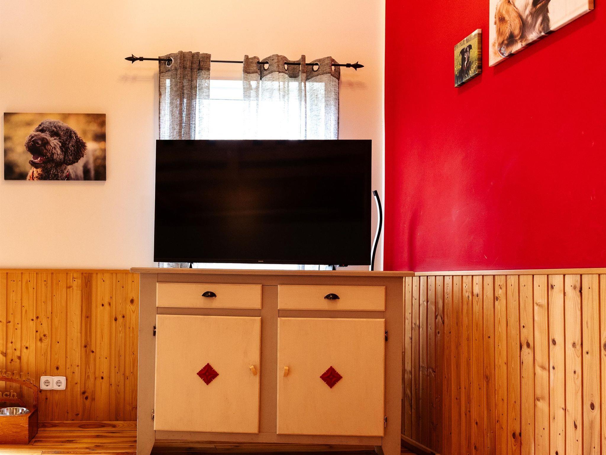 Im Hauptgebäude, einem ehemaligen Reiterhof, befindet sich der gemütliche Pfotentreff mit einer kleinen Gastroküche. Hier können unsere Gäste von Mittwoch bis Montag auf Wunsch frühstücken und auch zu Abend essen. Die vierbeinigen Begleiter dürfen selbstverständlich auch mit.