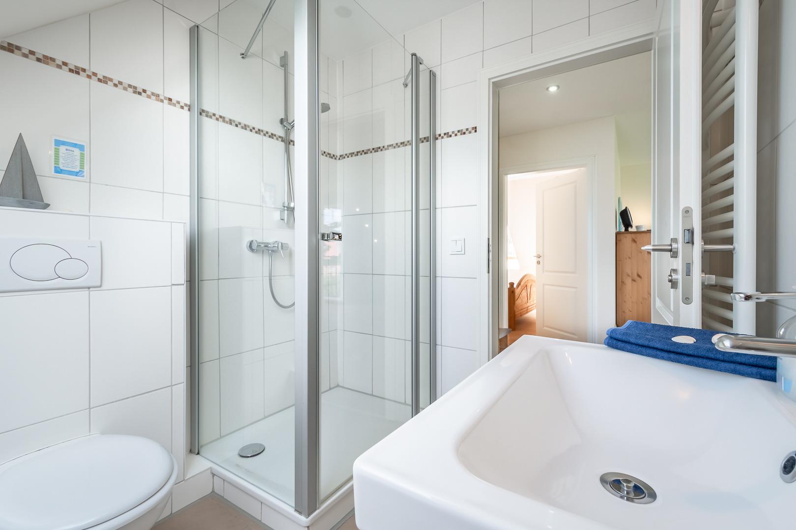 Die direkt gegenüberliegende Wohnung "Waterblick" ist fast identisch geschnitten und bietet sich für mitreisende Freunde oder für Ihren "Mehrgenerationenurlaub" an.