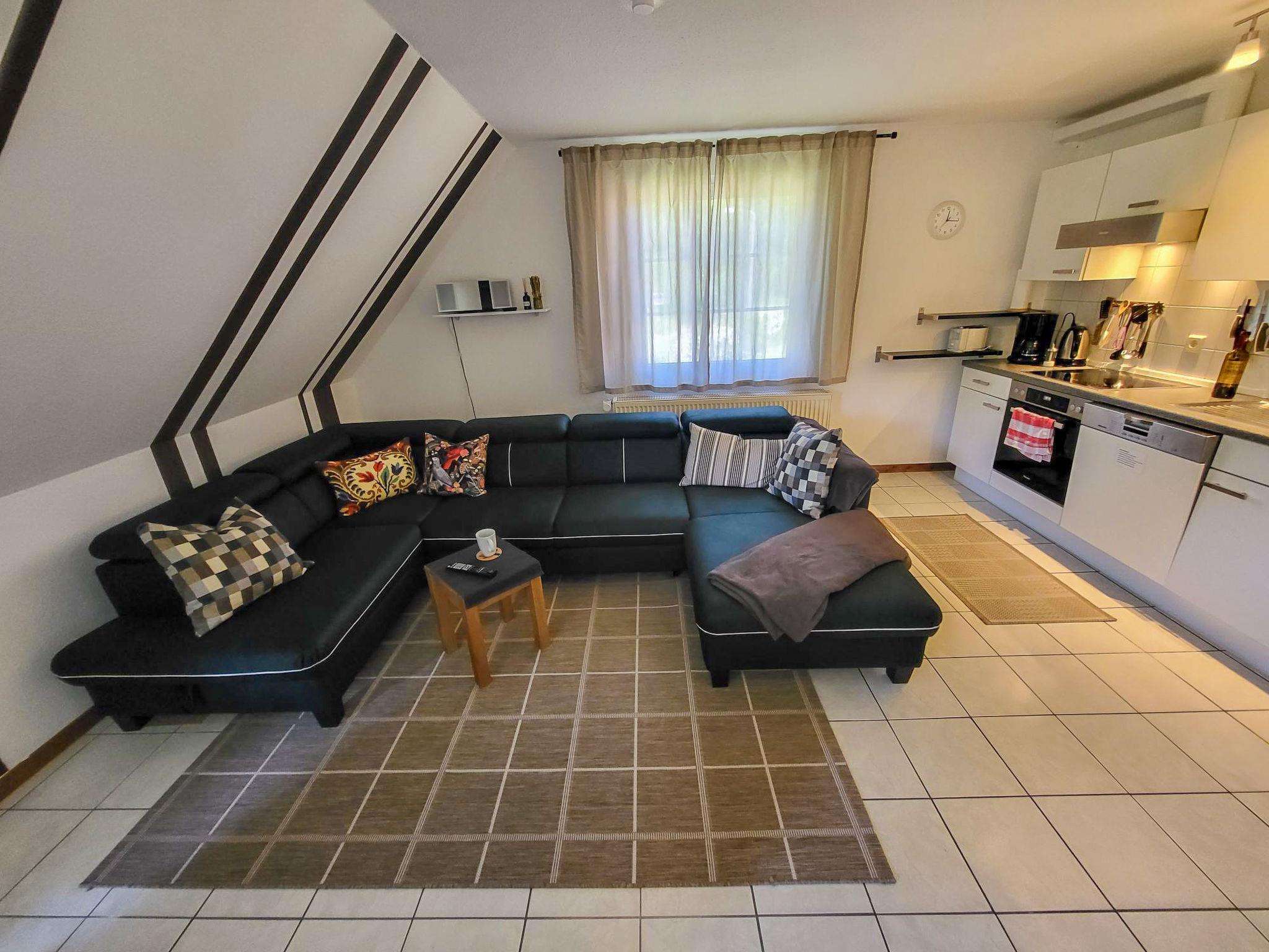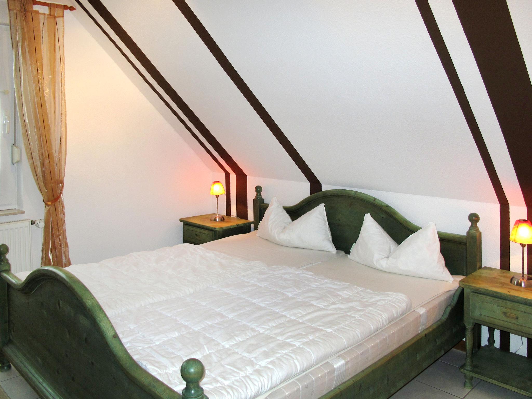 "im Dörp", 2-room apartment 50 m2, on the upper floor. Beautiful and modern furnishings: living/sleeping room with sloping ceilings with winter garden with 1 double sofabed, dining table, satellite TV, radio and CD-player. 1 double bedroom with sloping ceilings. Open kitchen (oven, dishwasher, 4 ceramic glass hob hotplates, toaster, kettle, microwave, electric coffee machine). Shower/WC. Gas heating. Covered balcony, box-room. Facilities: washing machine, children's high chair, baby cot. Internet (WiFi, free). Parking (1 car). Please note: non-smokers only. Maximum 1 pet/ dog allowed. Smoke alarm.