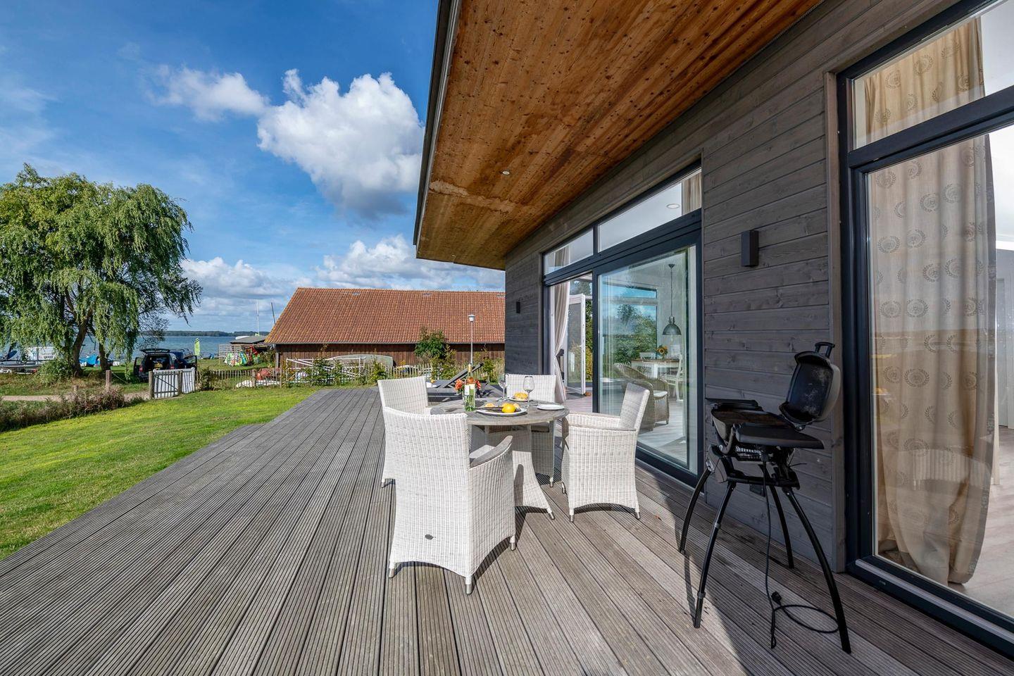 - Großzügige 55 m² Bankirai-Holzterrasse mit ganztägiger Sonne