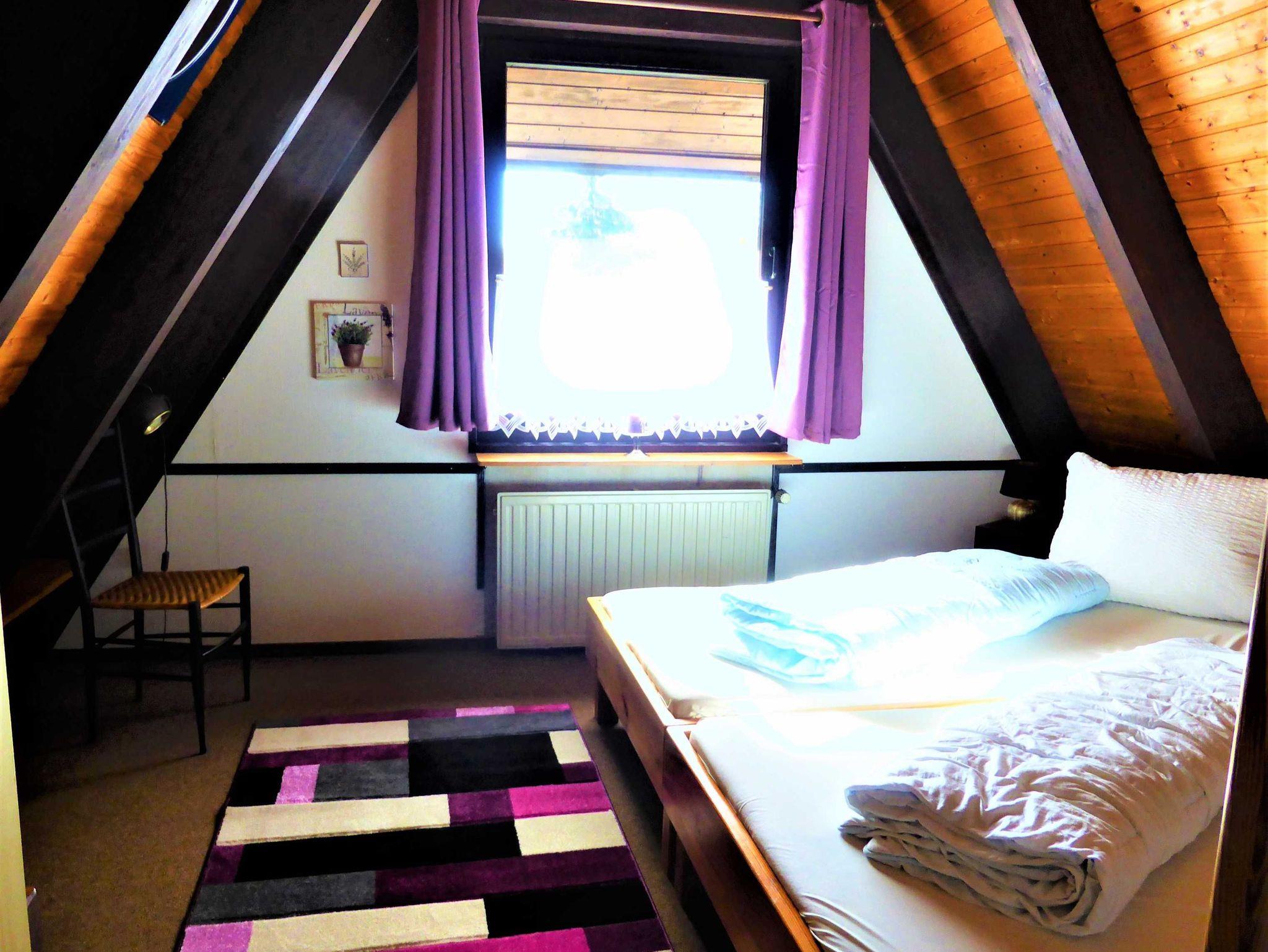 Sie sind aufgeteilt in ein Schlafzimmer mit zwei Betten (80x200) und ein Schlafzimmer mit drei Betten (2x = 90x200 / 1x = 80x200) sowie einer Schlafkoje im Spitzgiebel unter dem Dach (erreichbar über eine feststehende Holzleiter). Dieses Hochbett hat eine große Matratze mit dem Maß 140 x 200 cm. Im November 2022 bekam das große Schlafzimmer 2 neue rückenfreundliche Matratzen!
