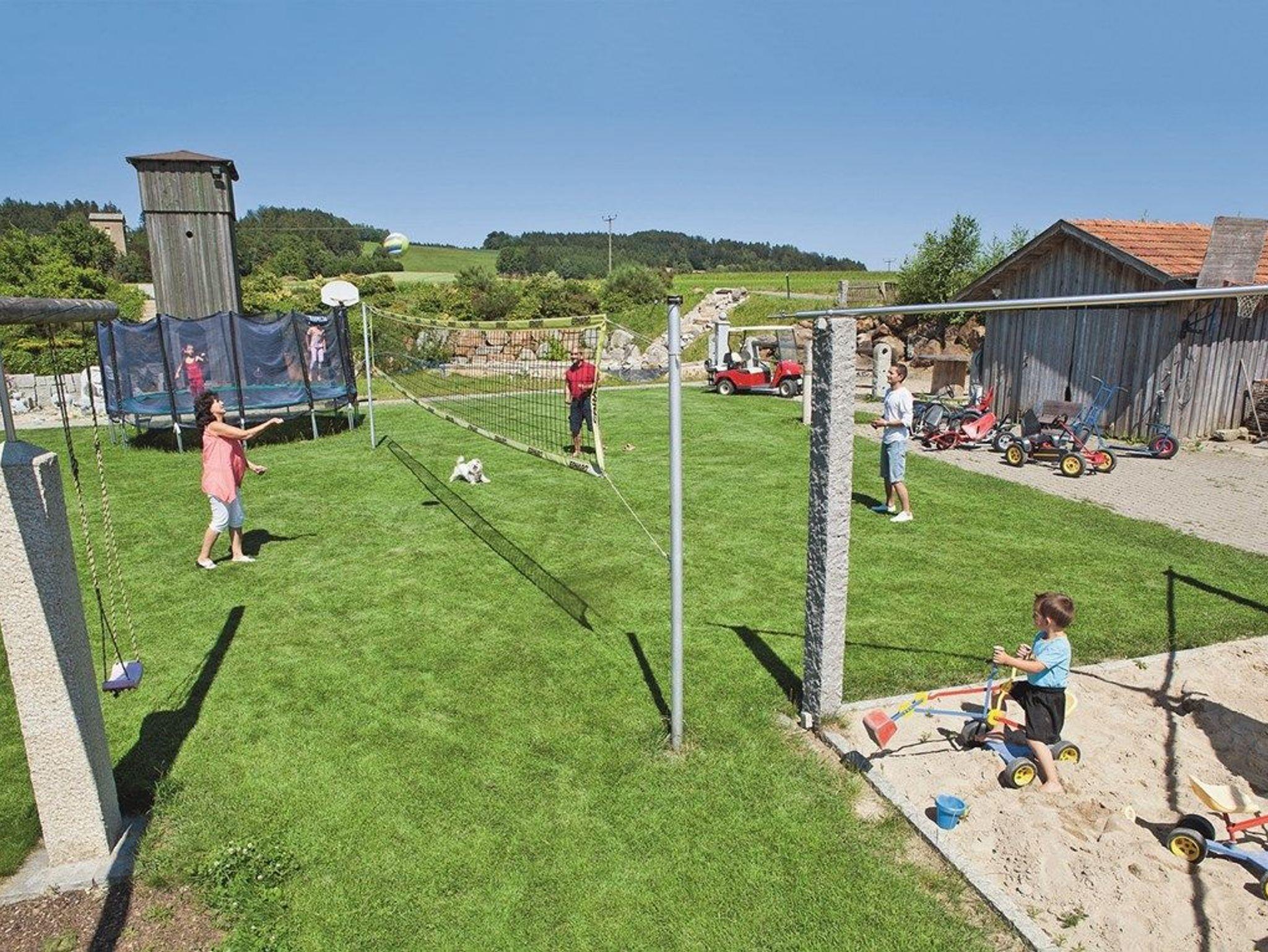 Unsere Familie mit 3 Kindern freut sich, Sie begrüßen zu dürfen. Die gemütlich eingerichteten Ferienwohnungen (2-8 Pers) haben Südlage, verfügen über Terrasse bzw. Balkon und befinden sich im EG und OG unseres Nebengebäudes inmitten von Wiesen und Feldern. Abseits der verkehrsreichen Straßen, in der Nähe von Waldmünchen gelegen, ist unser Haus bestens für Familien und Kinden geeignet. Aktivitäten in unserem Haus mit großem Aufenthaltsraum: - Tischtennis - Kicker - Kinderfahrzeuge - Riesentrampolin - Gemeinschaftsspiele - Galerie-Matratzenlager Aktivitäten auf unserem Gelände und Umland: - Volleyball - Fussball - Basketball - Kletter und Spielturm - Wasserspiele - Grillplatz - Lagerfeuerstelle - Brotbacken - geführte Naturwanderungen - Nordic-Walking - Bauernhofbesuch