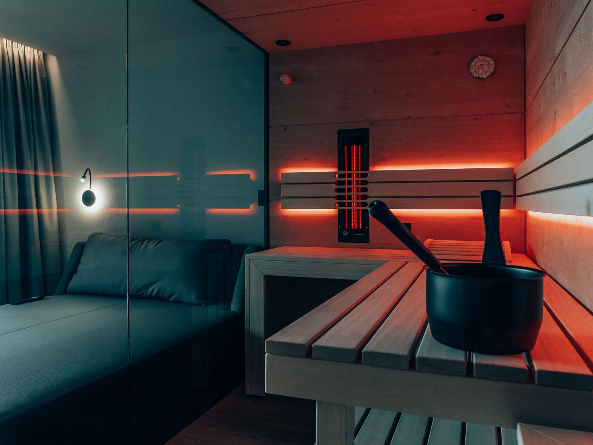 Hier treffen Design und Entspannung auf höchstem Niveau zusammen. Ihre private Sauna, die Ruhezone mit Musiksystem und hochwertige Einrichtung schaffen einen Ort, der Körper und Geist wieder in Einklang bringt. Ideal für Erholungssuchende mit Sinn für Exklusivität.