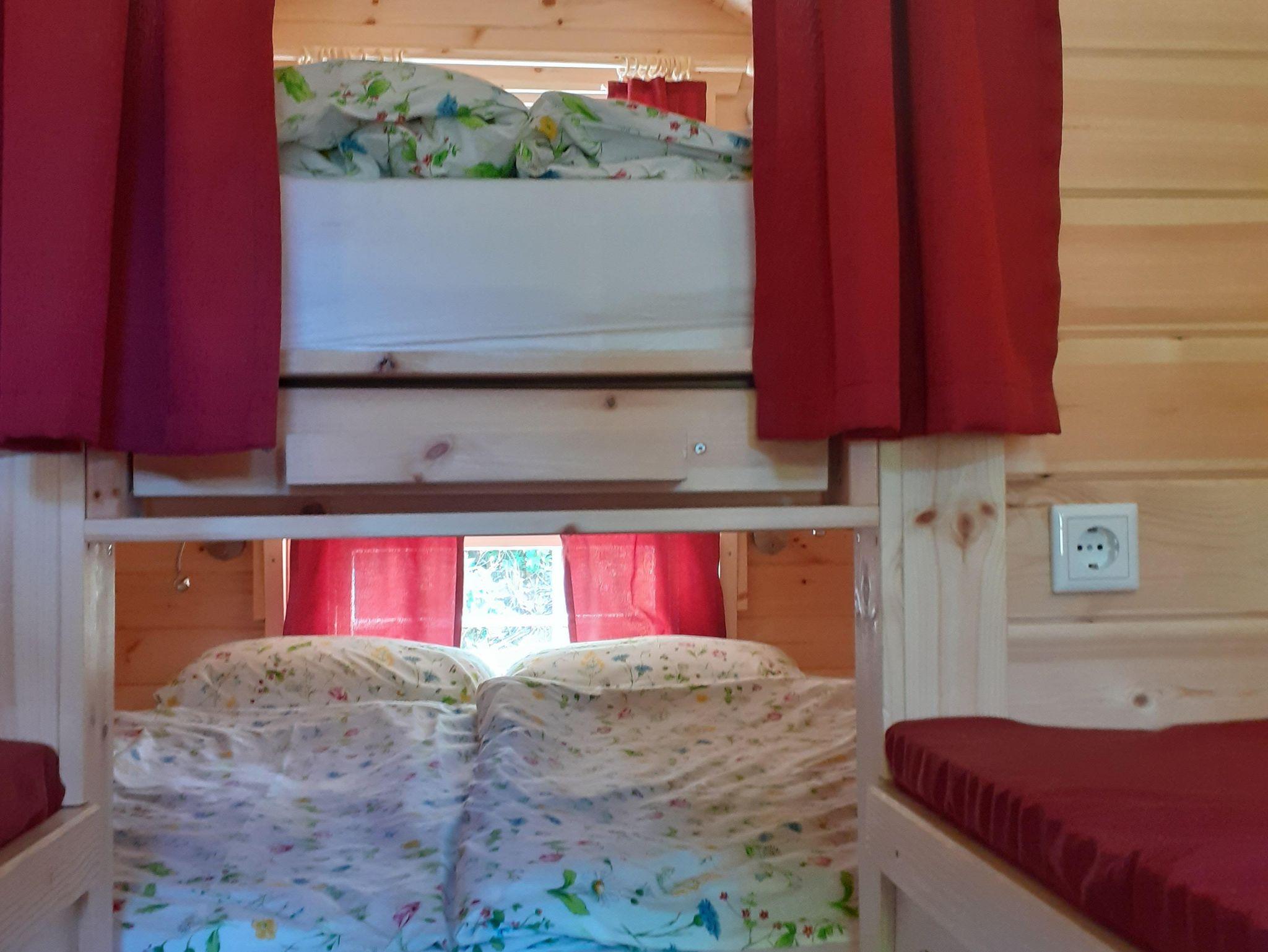 Freuen Sie sich auf erholsame Nächte inmitten von gemütlicher Bauernhof-Idylle! Unser Schlaffass Fuchsbau verfügt über eine moderne Ausstattung und viele Annehmlichkeiten. Damit Sie das ganze Jahr über ein tolles Urlaubs-Erlebnis auf unserem Ferienhof haben, ist das Fass beheizt. Für süße Träume und erholsame Nächte im Fass sorgen zwei übereinander gelegene Schlaf-Räume: Der gemütliche Rückzugsort für Erwachsene befindet sich oben und ist 2x2 Meter breit, Kinder können es sich im 2x1,40 Meter großen Schlaf-Raum bequem machen. Wir empfehlen die Übernachtung im Fass mit zwei Personen.