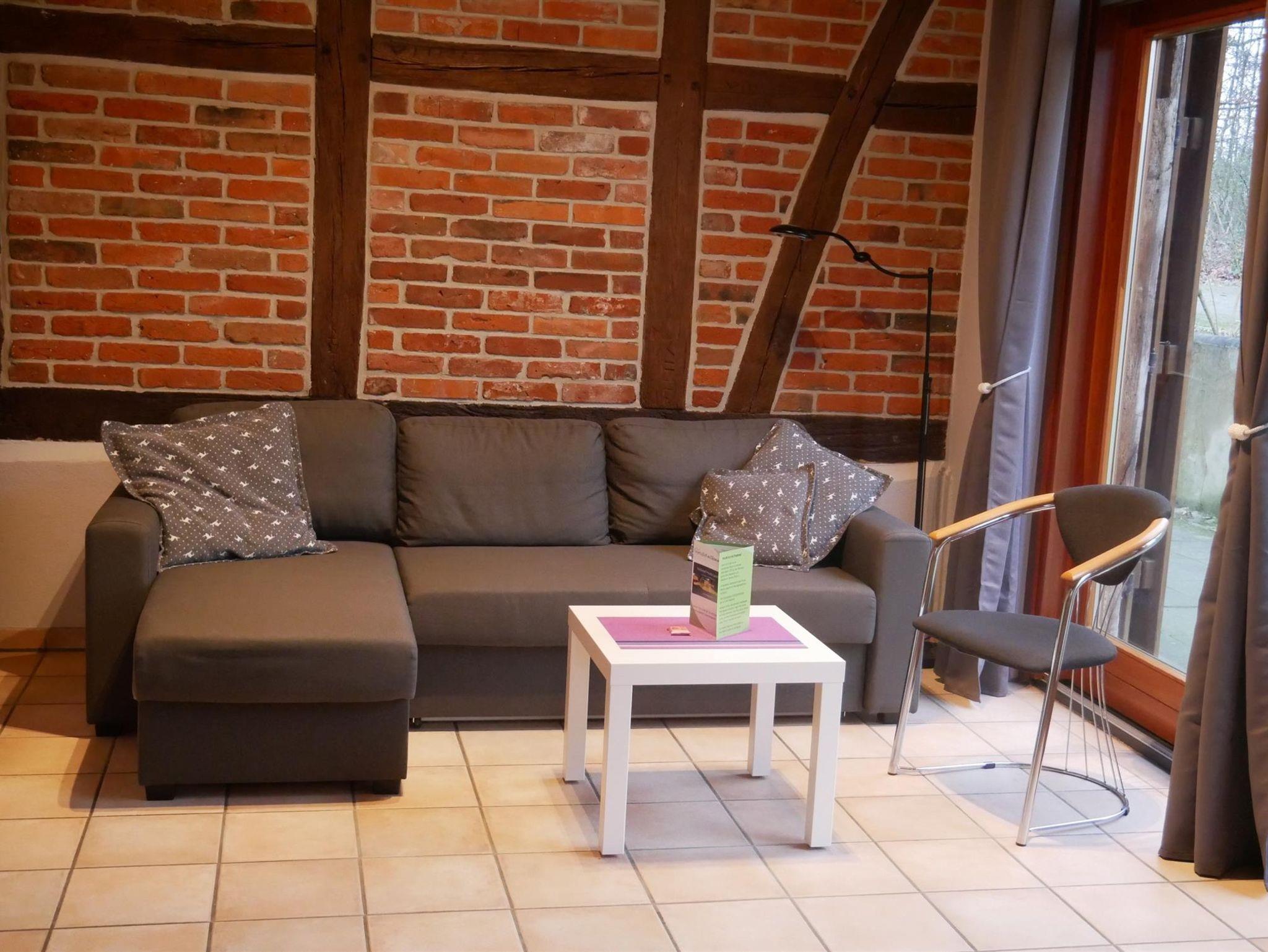 Wohnung 2 befindet sich im Erdgeschoss des ehemaligen Schafstallgebäudes. Mit einer Größe von etwa 56 m² bietet sie Platz für 4 Personen und verfügt über ein Schlafzimmer, Kinderzimmer (Etagenbett), Bad sowie einen großen Wohnbereich mit hochwertiger und voll eingerichteter Küchenzeile. Auf der dem Wald zugewandten Terrasse finden sich Gartenmöbel zum Verweilen, im Eingangsbereich kann in unserem Fachwerkpavillon bei jedem Wetter gegrillt werden. Da größter Wert auf die Verwendung ökologischer Baustoffe gelegt wurde, haben die Wohnungen ein natürliches Raumklima erhalten, das auch für Allergiker geeignet ist. Die Wohnung 2 ist individuell und exklusiv ausgestattet und verfügt über SAT-TV und Telefon. Ein Internetanschluss ist vorhanden und kann unter Verwendung Ihres eigenen Zugangsmodems genutzt werden.
