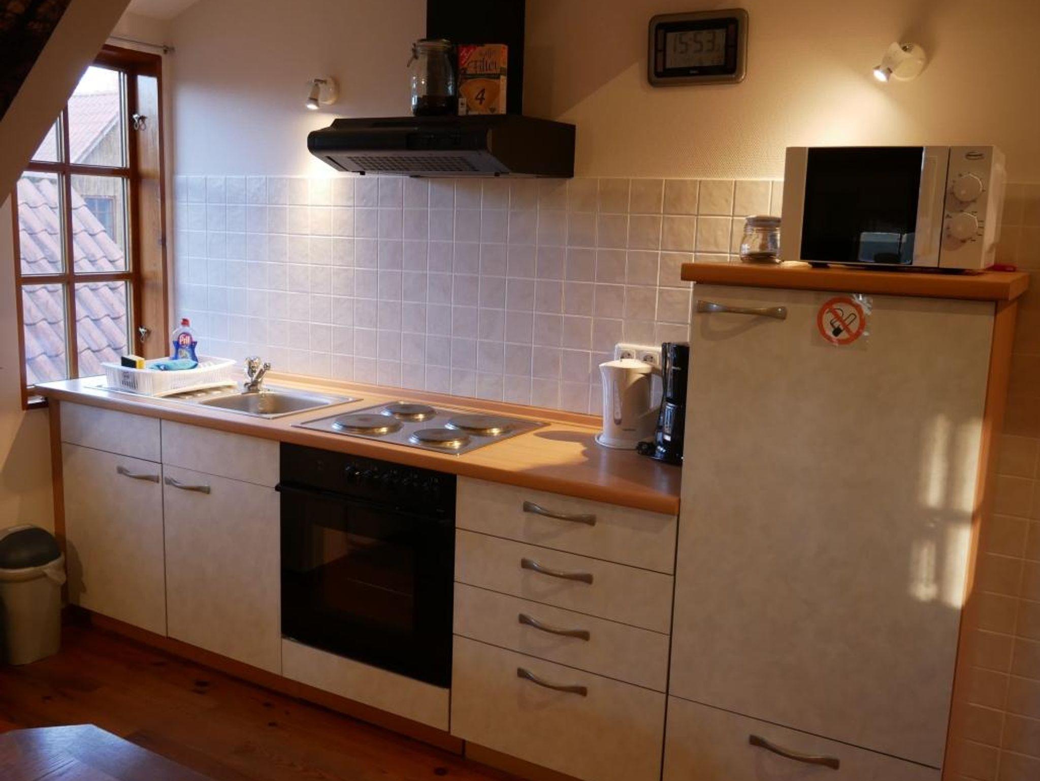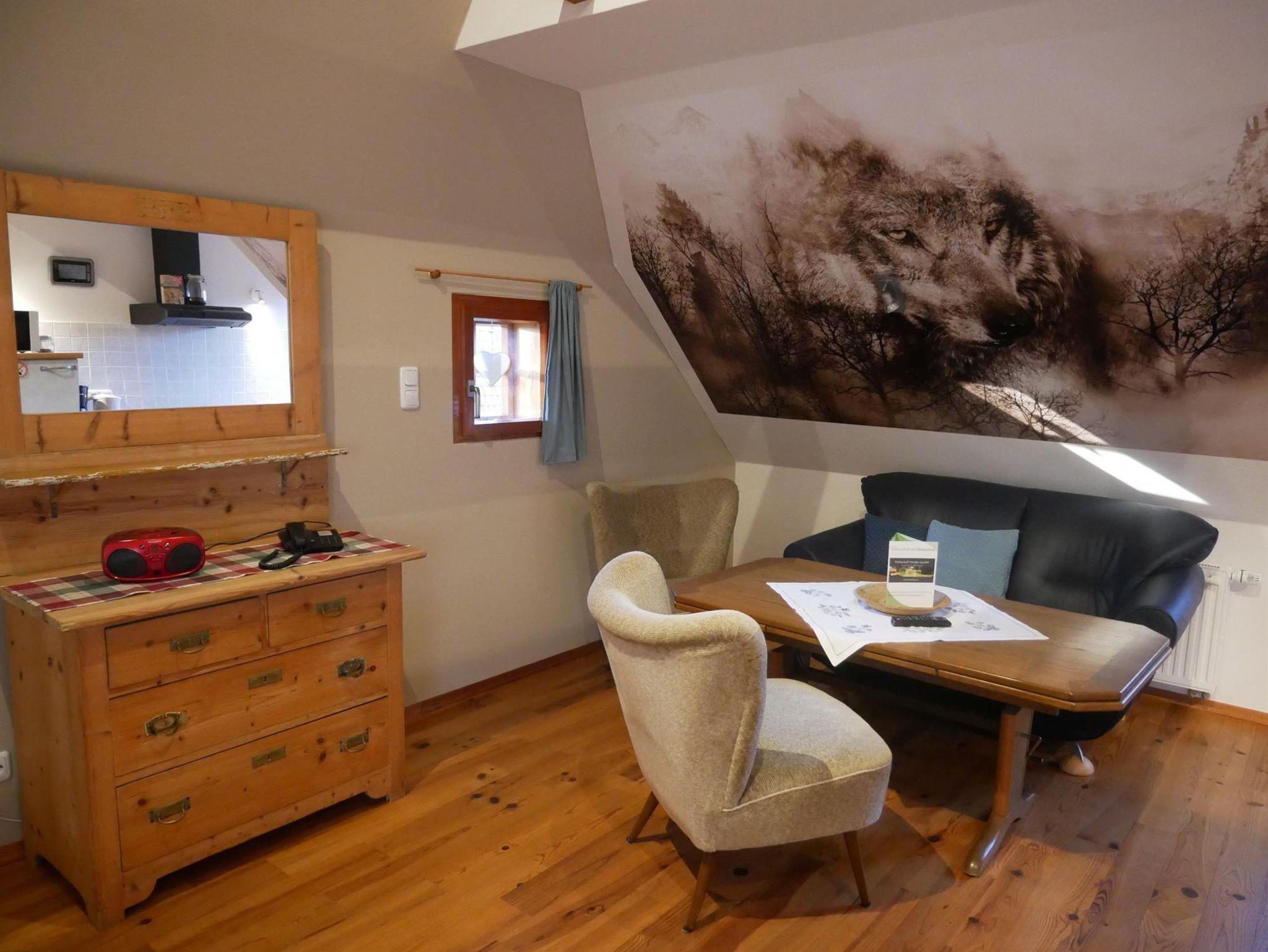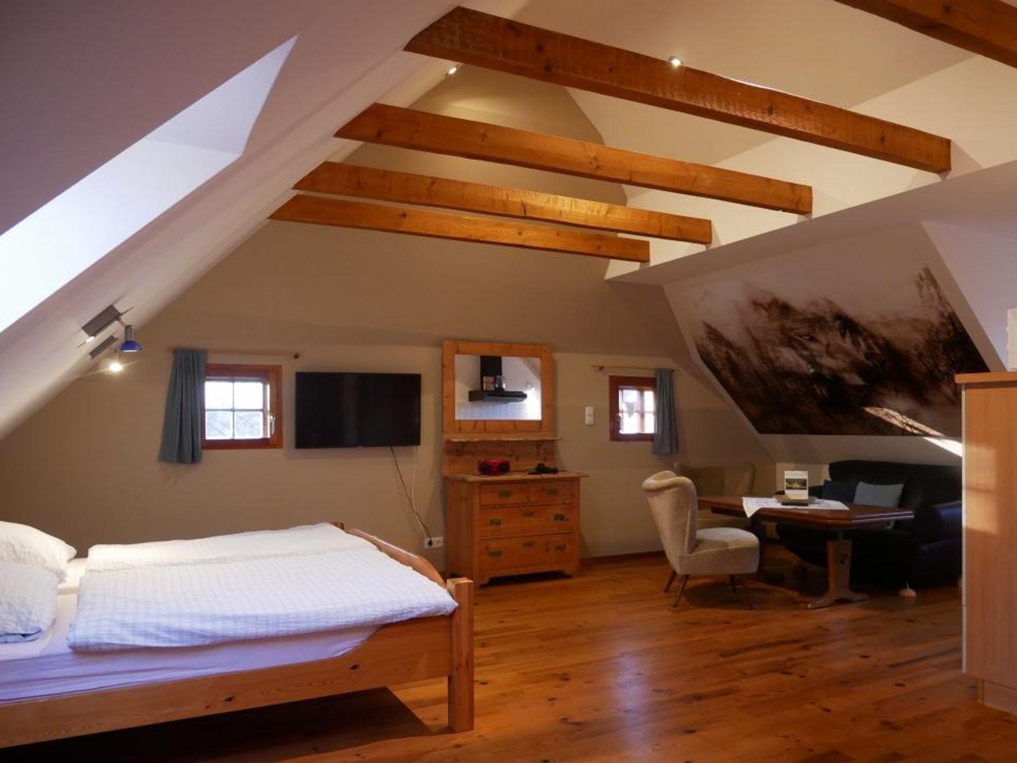 Wohnung Wolfshöhle befindet sich im Obergeschoss des ehemaligen Schafstallgebäudes und hat eine Größe von etwa 38 m².