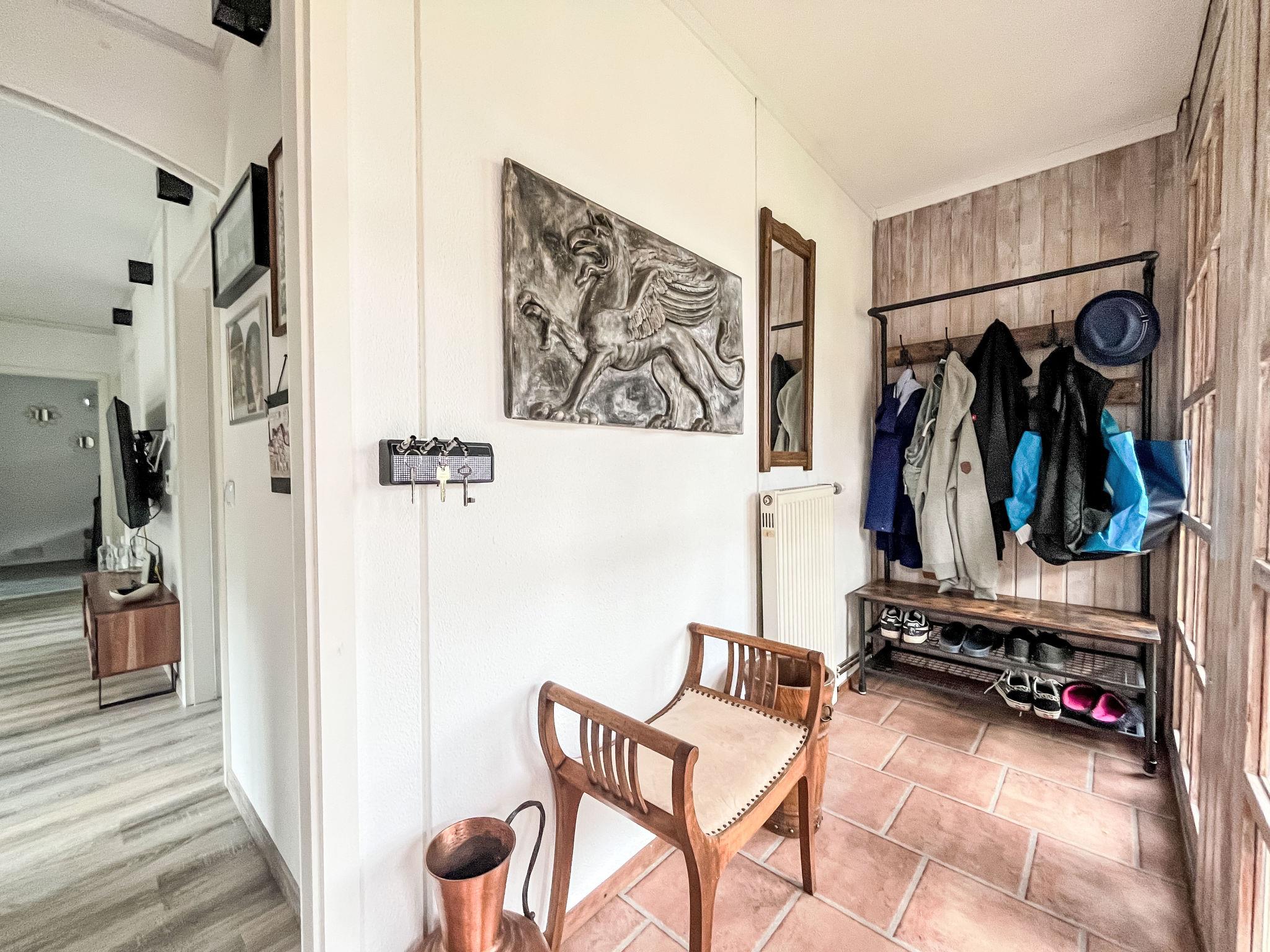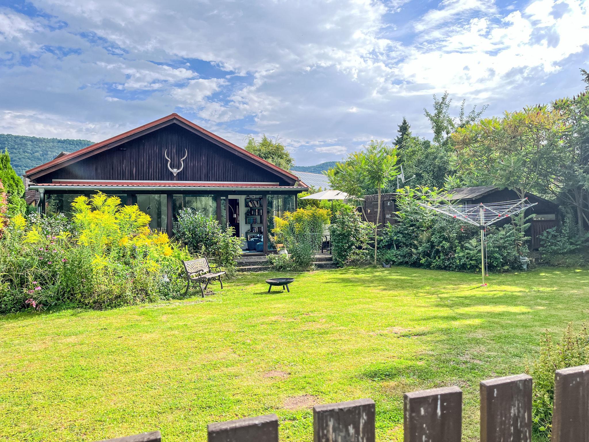 "Ferienhaus Inge & Henry an der Werra", 3-room house 100 m2. Object suitable for 3 adults + 2 children. Tasteful and cosy furnishings: living/dining room with winter garden with open-hearth fireplace, dining nook and digital TV. Exit to the terrace. 1 room with 1 double bed (160 cm, length 200 cm). 1 room with 1 x 2 bunk beds. Large kitchen (oven, dishwasher, 4 ceramic glass hob hotplates, toaster, kettle, microwave, freezer, electric coffee machine). Shower/WC. Heating. Large terrace. Terrace furniture, barbecue, deck chairs, conservatory, box-room. Beautiful view of the river. Facilities: washing machine, hair dryer. Internet (WiFi, free). Please note: suitable for families. Non-smokers only. Smoke alarm. The bunk bed has the following dimensions: Top 100x200cm/Bottom 140x200. Winter garden with reading corner, workspace and large seating area. Bookings accepted for holiday purposes only.