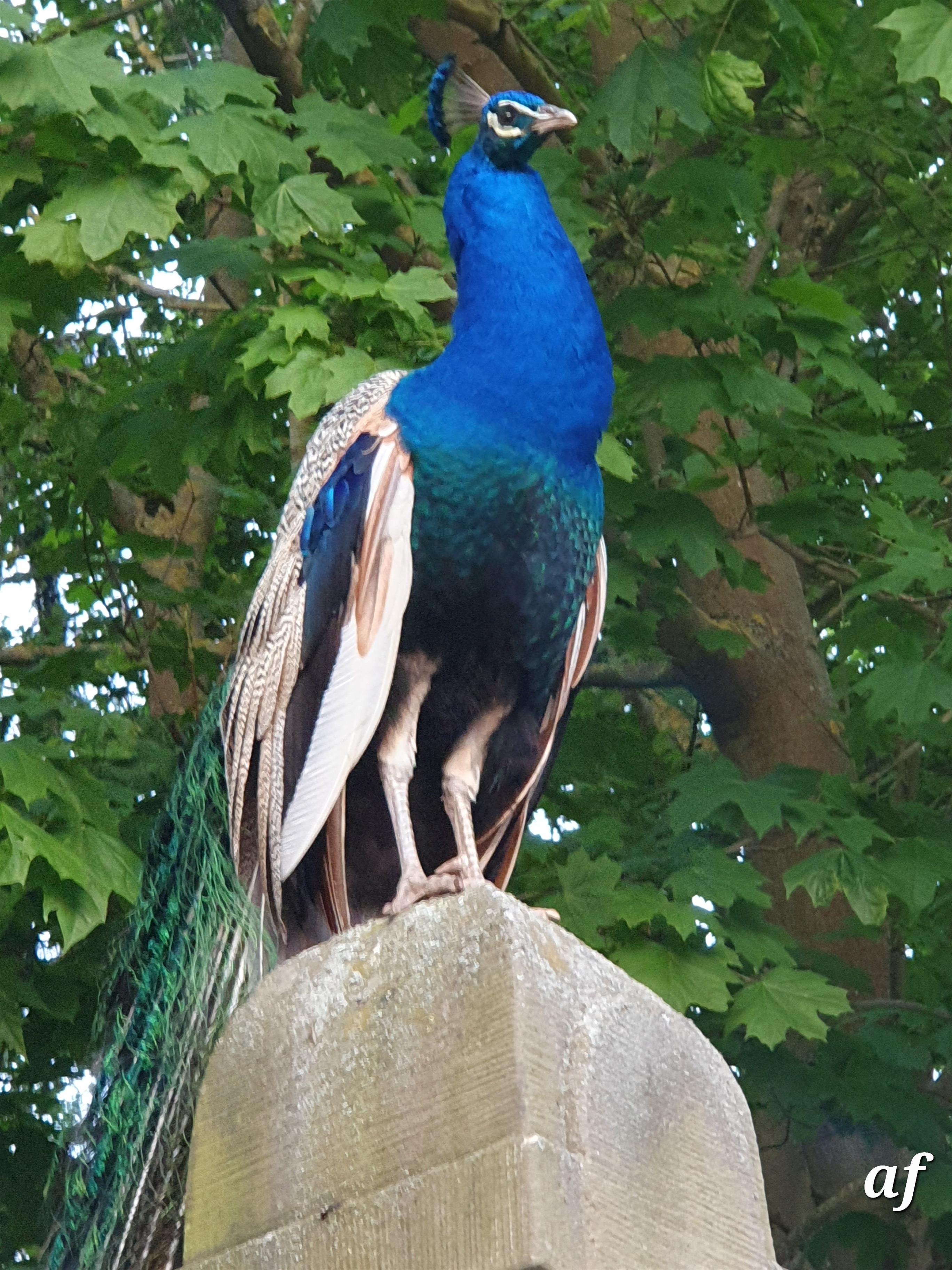Ein wundervoller Ausblick auf einen gegenüber liegenden Garten, in welchem Tiere frei herum laufen, Hirsche, Rehe ,ein Emu, ein riesiges Schaf und ein Pfau. Die Hafengaststätte "Zur Schlagd" , ebenfalls schräg gegenüber,. ist ein wunderbarwes Restaurant