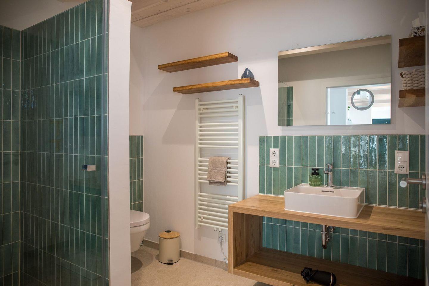 Ihnen stehen insgesamt 4 Zimmer zur Verfügung, darunter 3 Schlafzimmer, 1 Badezimmer und 1 Gäste-WC, jeweils mit einer bodengleichen Dusche, Waschbecken, WC, Spiegel, Kosmetikspiegel und Haartrockner ausgestattet. Fußbodenheizung, eine Wärmepumpe sowie Parkettböden im Wohn- und Schlafbereich sorgen für ein angenehmes Wohnklima. Sichtschutz an allen Fenstern ergänzt den Komfort.