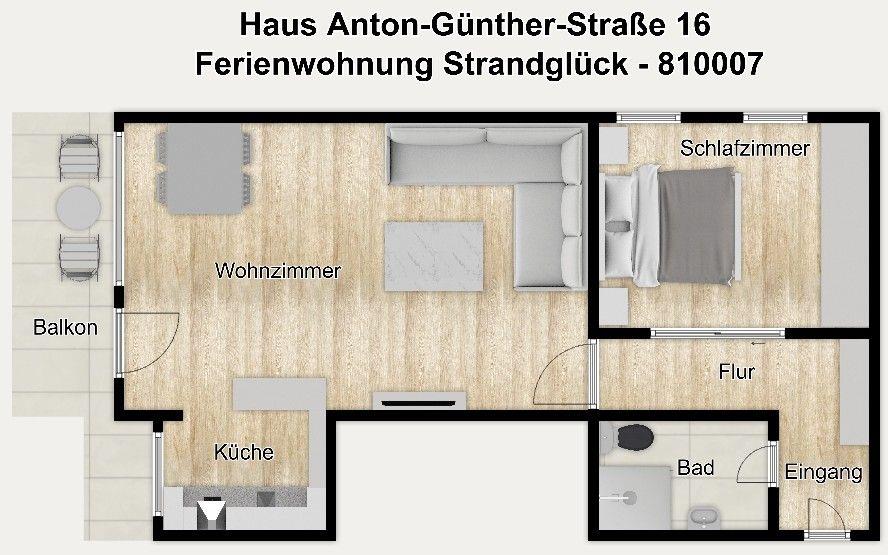 Genießen Sie Ihren Nordsee-Urlaub ganz nah am Strand! Unsere moderne Ferienwohnung "Strandglück" im "Haus Anton-Günther-Straße 16" auf Wangerooge verwöhnt Sie mit einer komfortablen Ausstattung, einer modernen hochwertigen Küche, einem gemütlichen Wohnraum und einem separaten Schlafzimmer. Auf dem schönen Balkon genießen Sie wohltuende Nordseeluft. Zu den weiteren Annehmlichkeiten zählen freies WLAN und TV. Wir wünschen Ihnen gute Erholung!