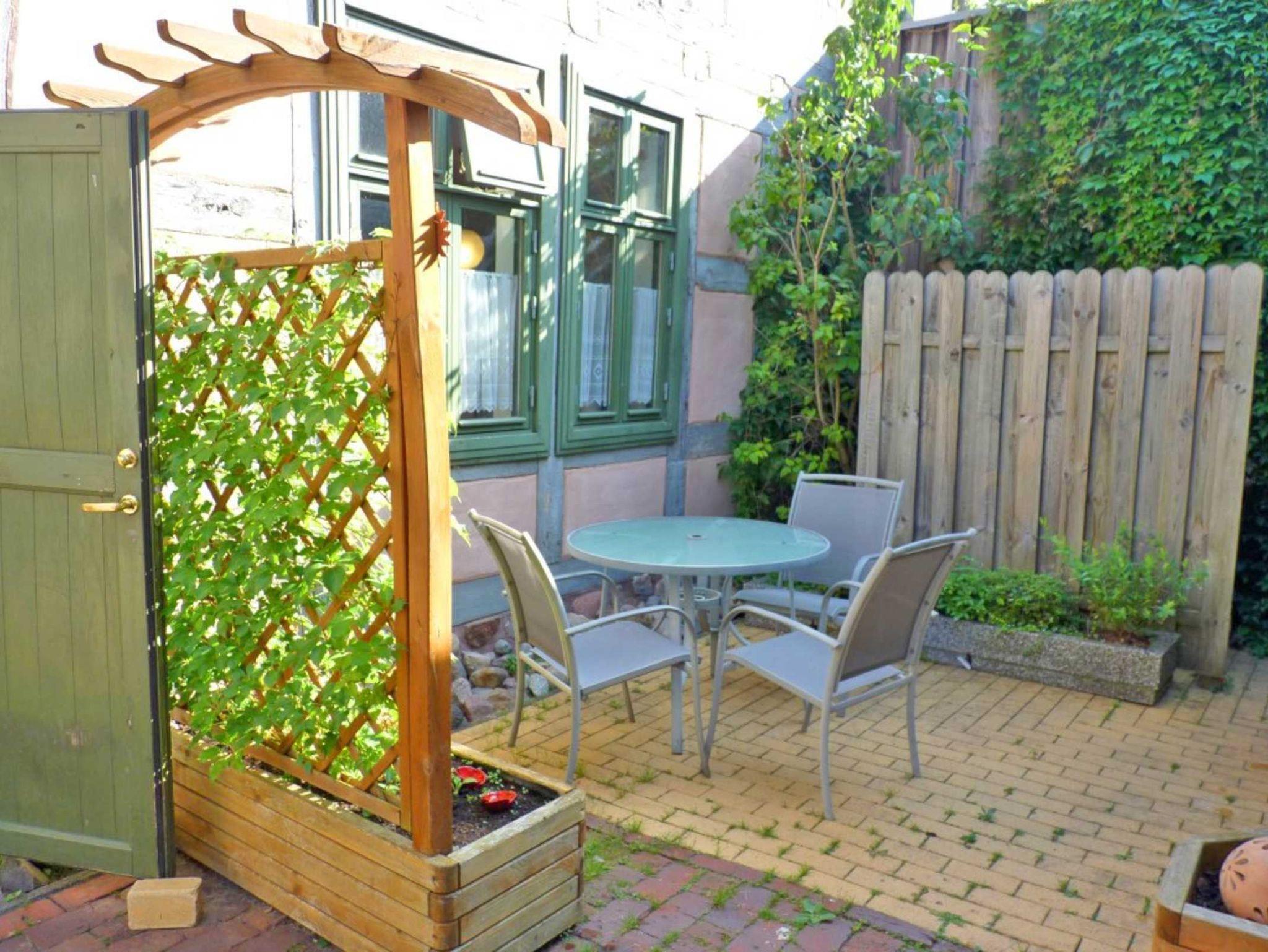 Die Ferienwohnung befindet sich in einem restaurierten Fachwerkhaus in Hochparterre am Ende der Einkaufsstraße. Als Aussensitzmöglichkeit kann ein schöner begrünter Innehof im typischen Altstadtstil genutzt werden. Für die Ferienwohnung steht eine Sitzecke mit Gartenmöbeln und Grill zur Verfügung. Fahrräder können sicher und trocken eingeschlossen werden. Der PKW-Stellplatz ist ca. 300 m entfernt.