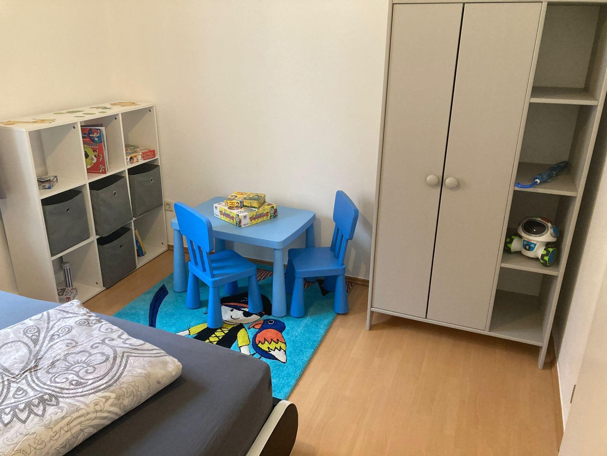 • 1 Schlafzimmer mit Doppelbett (1,40m x 2,00m) und Platz für 1 Kinderreisebett,