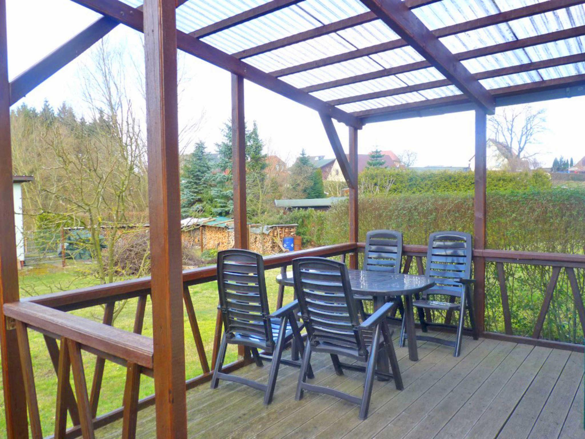 Die Ferienwohnung im Erdgeschoss befindet sich im Haus der Vermieter mit eigenem Eingang. Das Grundstück ist groß, grün und lädt zum Verweilen ein. Auf der überdachten Terrasse mit Gartenmöbeln kann man frühstücken, grillen oder einfach entspannen. Kinder können sich auf dem eingezäunten Grundstück frei bewegen. Es ist genügend Platz für Federball Spiele oder ähnliches. Der PKW-Stellplatz ist direkt vor dem Haus auf dem Grundstück.