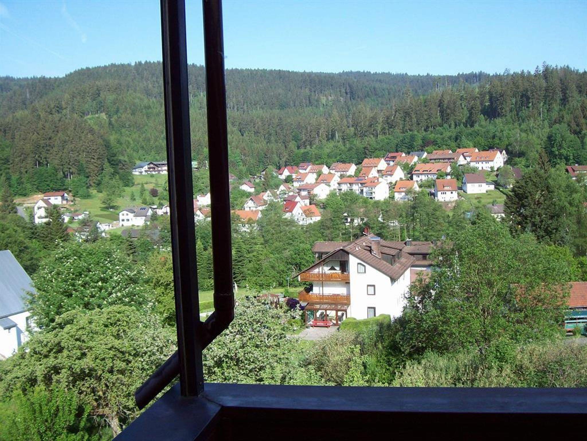 Gemütliche DG-Ferienwohnung (55 m²) mit Wohnküche, zwei getrennte Schlafzimmer, 1 Bad mit Badewanne/Dusche/WC und 1 Bad mit Dusche/WC sowie Balkon in sonniger, ruhiger Waldrandlage mit herrlichem Panorameblick, nähe Waldschwimmbad und Rundwanderwege. Kinderermäßigung auf Anfrage. Haustiere auf Anfrage: 5,00 € pro Tag.