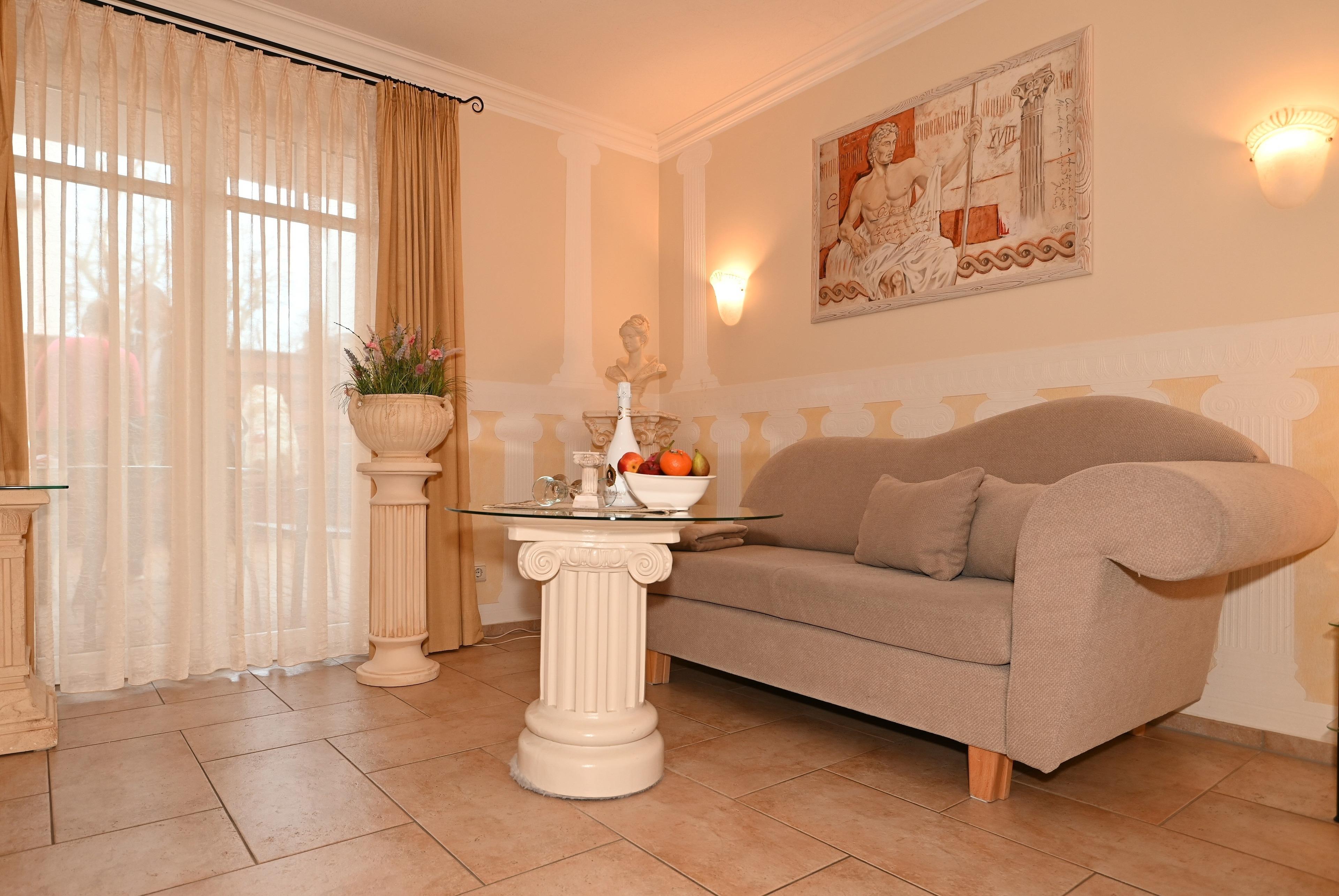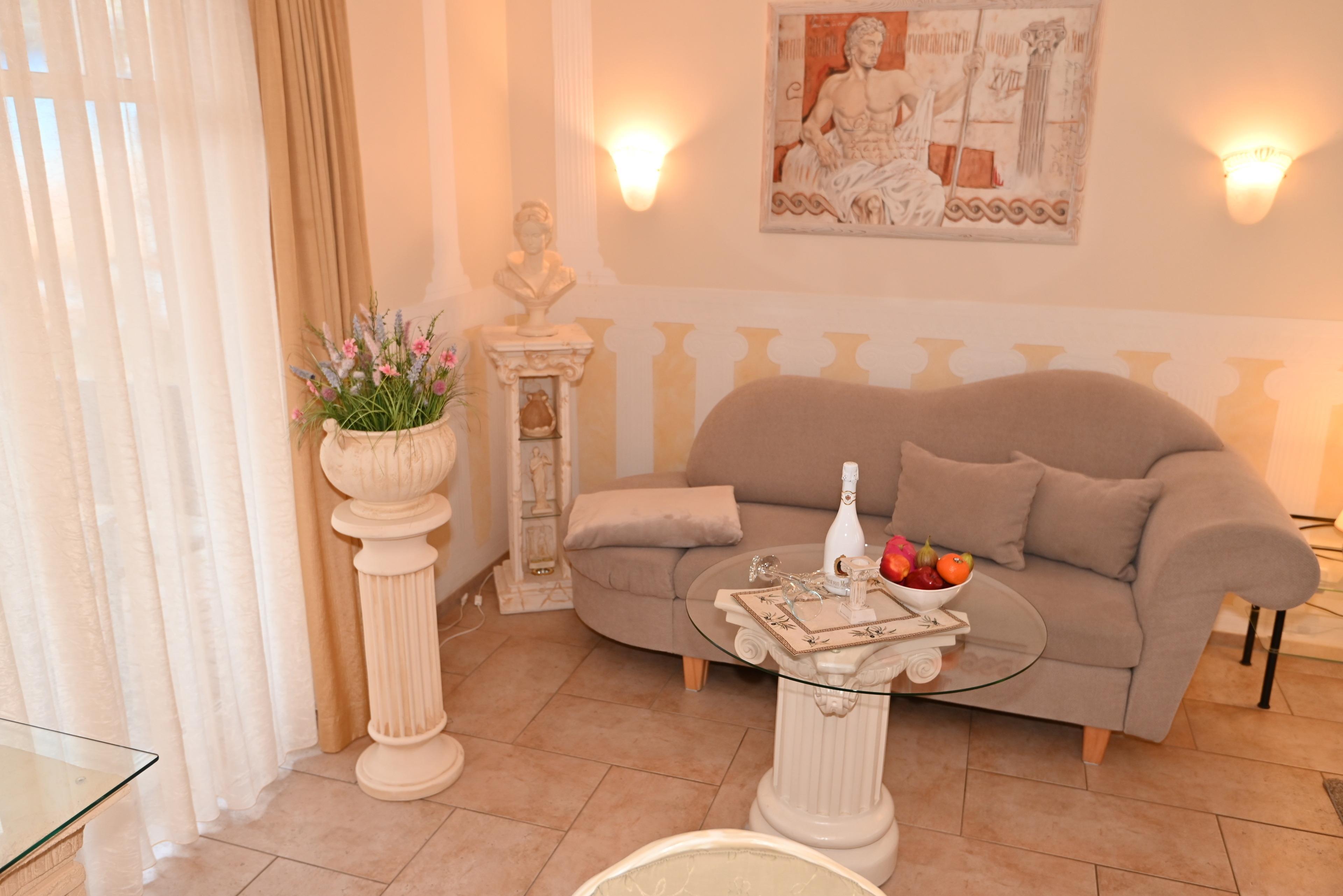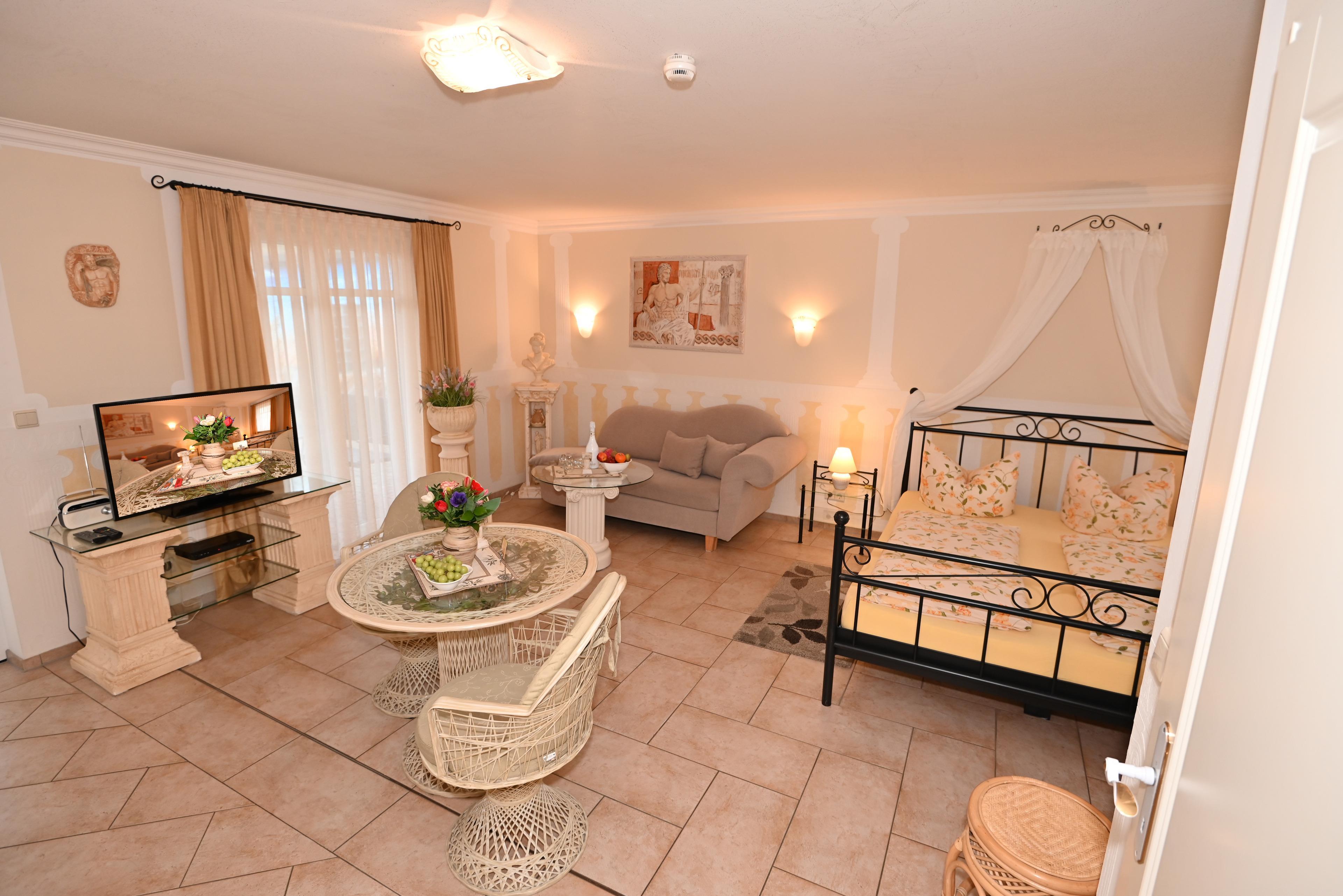 Das Appartement Rhodos wurde von der Eigentümerin mit viel Liebe zum Detail eingerichtet um ein ganz besonderes Flair für Ihren Urlaub zu schaffen.??Über die überdachte Terrasse im Erdgeschoss erreichen Sie das Appartement Rhodos (separater Eingang).