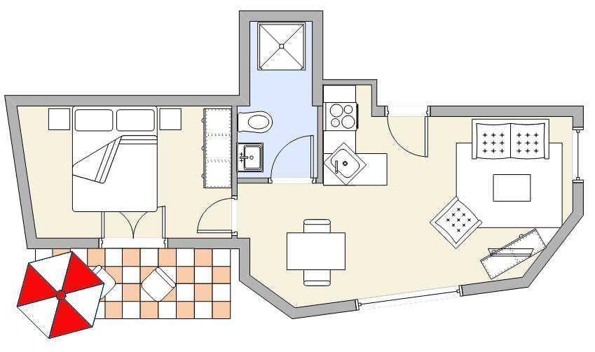 45m² Ferienwohnung für 2 Personen mit Balkon und Wlan