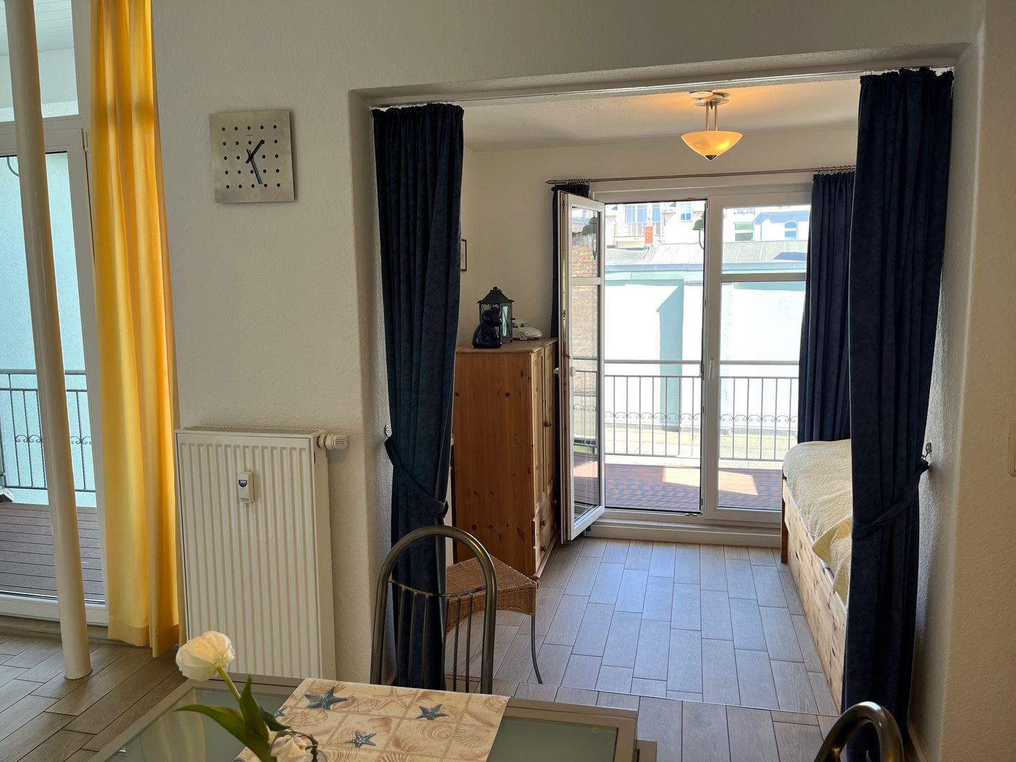 Auf dem Balkon lassen sich sonnige Stunden und frische Meeresluft perfekt genießen. WLAN steht selbstverständlich zur Verfügung, und im abschließbaren Fahrradraum sind Ihre Räder sicher untergebracht.