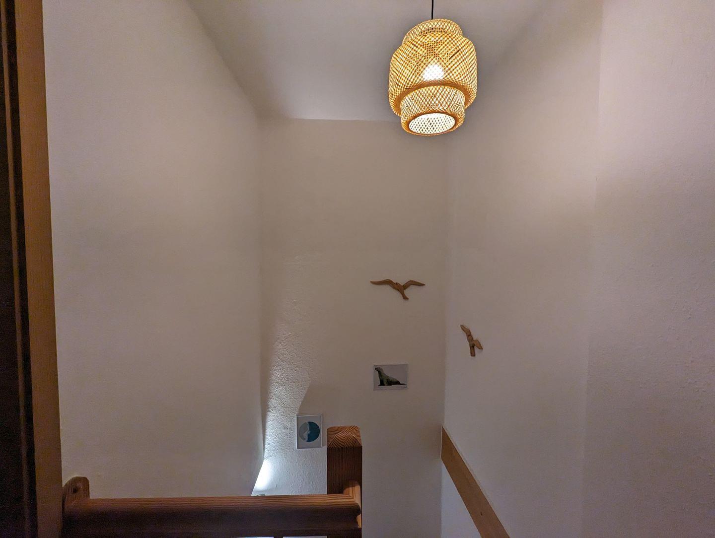 Im Erdgeschoss lädt der gemütliche Wohnbereich mit Couch, Essplatz und offener Küche zum Verweilen ein. Im Obergeschoss befinden sich das Schlafzimmer mit Doppelbett sowie das moderne Badezimmer.