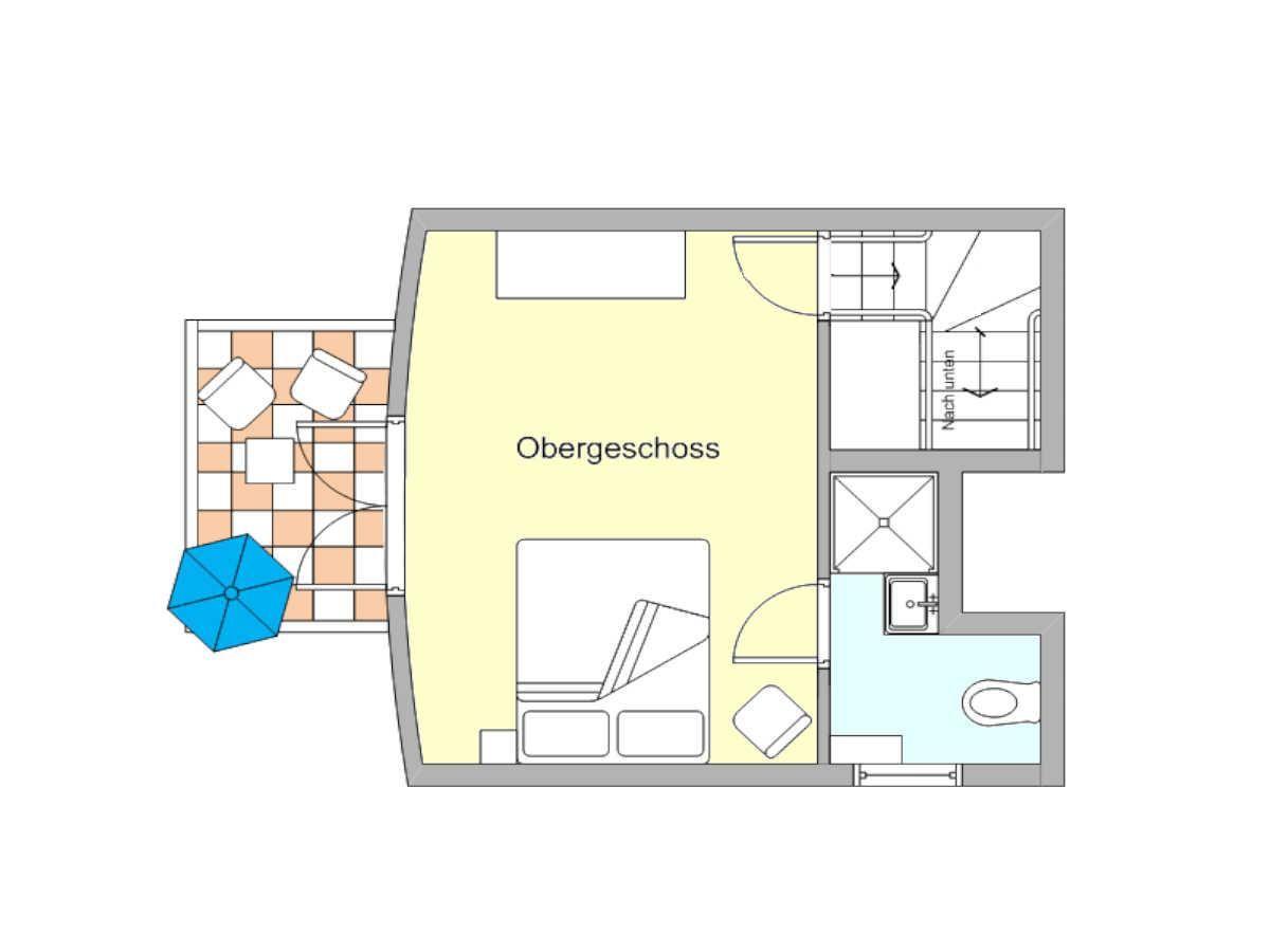 Im Obergeschoss wartet ein weiteres helles Wohn- und Schlafzimmer mit zwei Einzelbetten, TV und eigenem Badezimmer mit Dusche und WC – ideal für Familien oder Paare, die Wert auf Privatsphäre legen. Hier können Sie außerdem den möblierten Balkon nutzen.