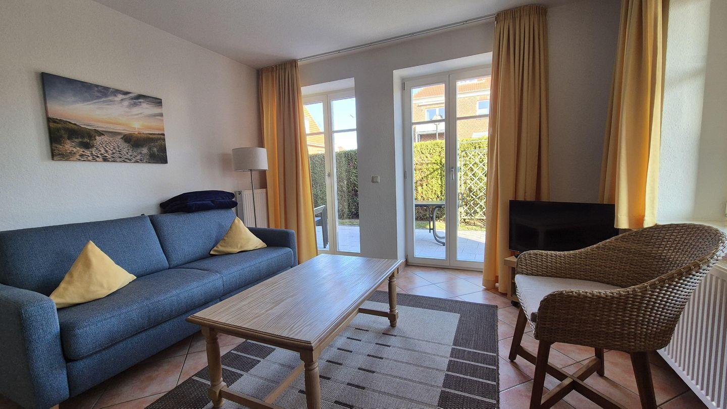 Das helle Apartment verfügt über zwei Zimmer, die funktional und geschmackvoll eingerichtet sind. Im separaten Schlafzimmer finden Sie bequeme Betten für erholsamen Schlaf, während im großzügigen Wohnbereich ein gemütliches Sofa weitere Schlafmöglichkeiten bietet. Insgesamt stehen vier Schlafmöglichkeiten zur Verfügung, sodass sowohl Paare als auch Familien mit Kindern oder Babys Platz finden – Letztere sind hier ausdrücklich willkommen. Zum entspannten Tagesausklang lädt der Wohnbereich mit TV sowie kostenfreiem WLAN ein.