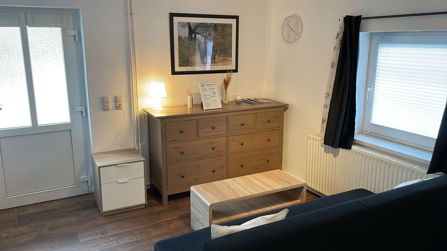 Neben den praktischen Annehmlichkeiten überzeugt die Wohnung auch mit einer freundlichen und behaglichen Atmosphäre. Das Sofa lädt dazu ein, nach einem erlebnisreichen Tag zu verweilen.