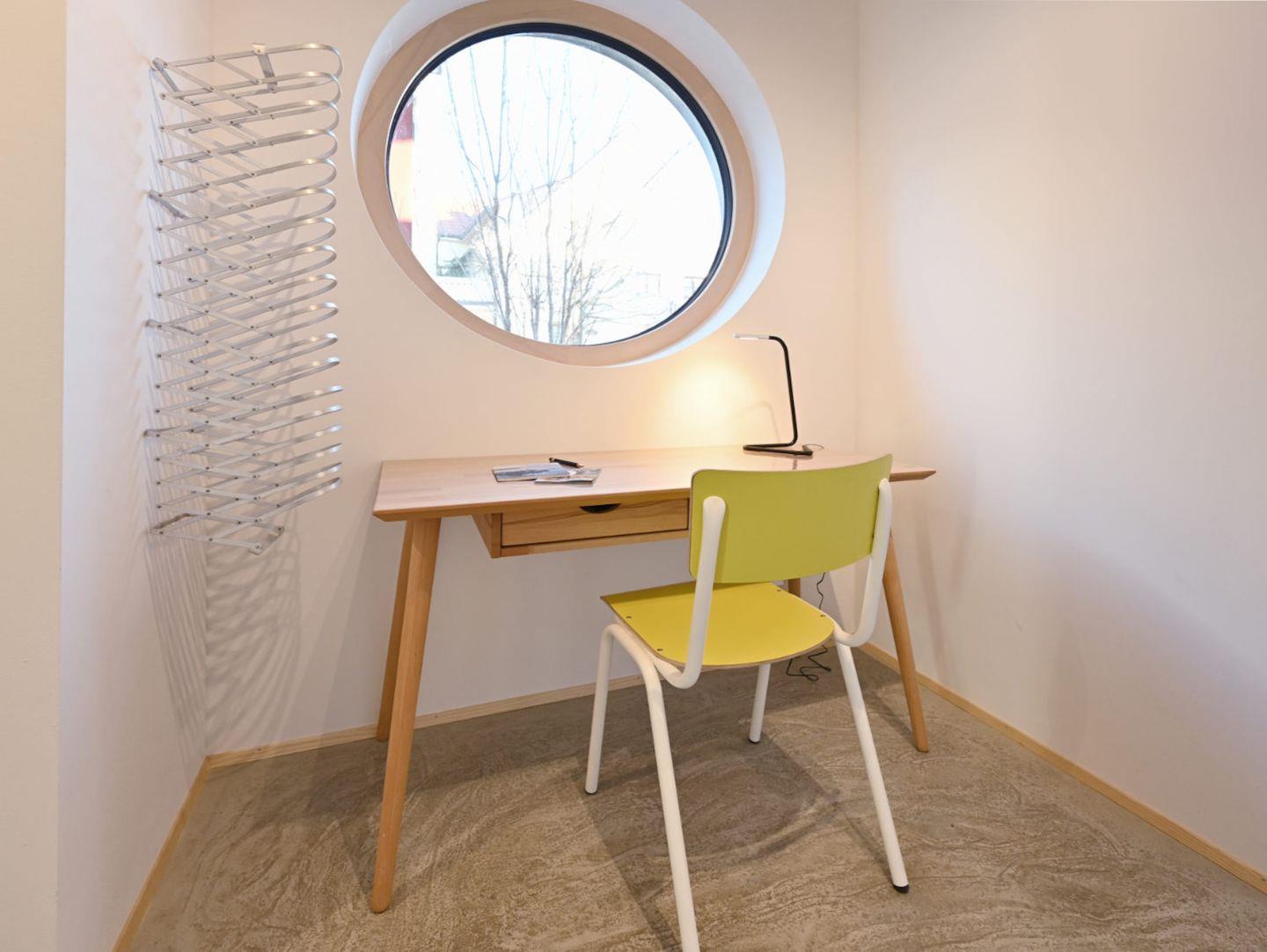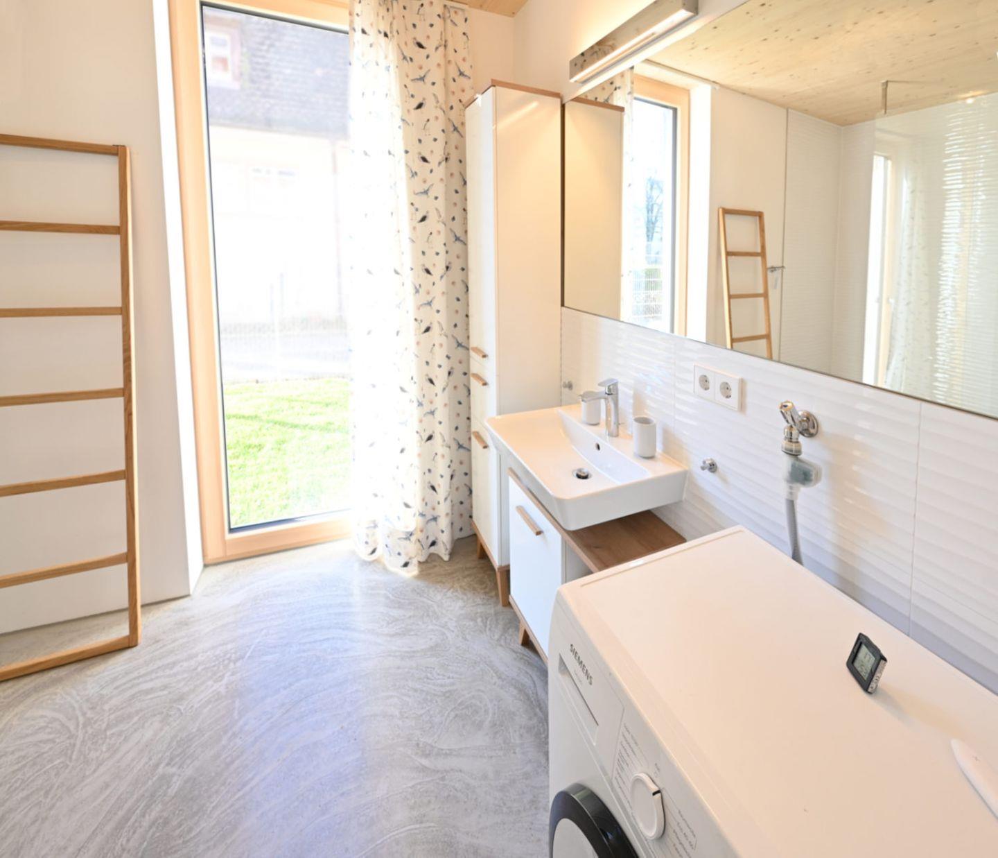 Der Neubau in ökologischer Holzbauweise wurde als Niedrigenergiehaus konzipiert und mit hochwertigen Holz-Alu-Fenstern sowie wandbündigen Türen ausgestattet. Eine Wärmepumpe die mit Strom aus Photovoltaik betrieben wird versorgt das Gebäude mit Energie. Große Sorgfalt wurde auf die Verwendung natürlicher Materialien gelegt, um ein gesundes und behagliches Wohnklima zu schaffen.