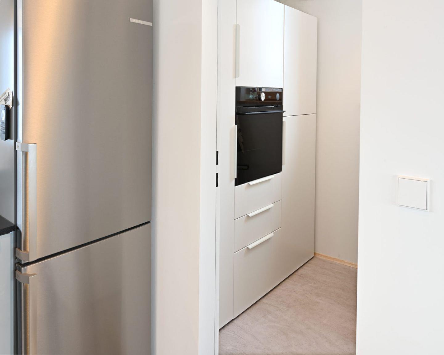Direkt angrenzend zur Küche befindet sich eine praktische Speisekammer mit viel Stauraum sowie einem Backofen mit Dampffunktion. Eine zusätzliche Toilette mit großem Waschbecken im hinteren Teil des Dachgeschosses sorgt dafür das Sie nicht zu oft die Treppe nach unten ins Bad benutzen müssen.