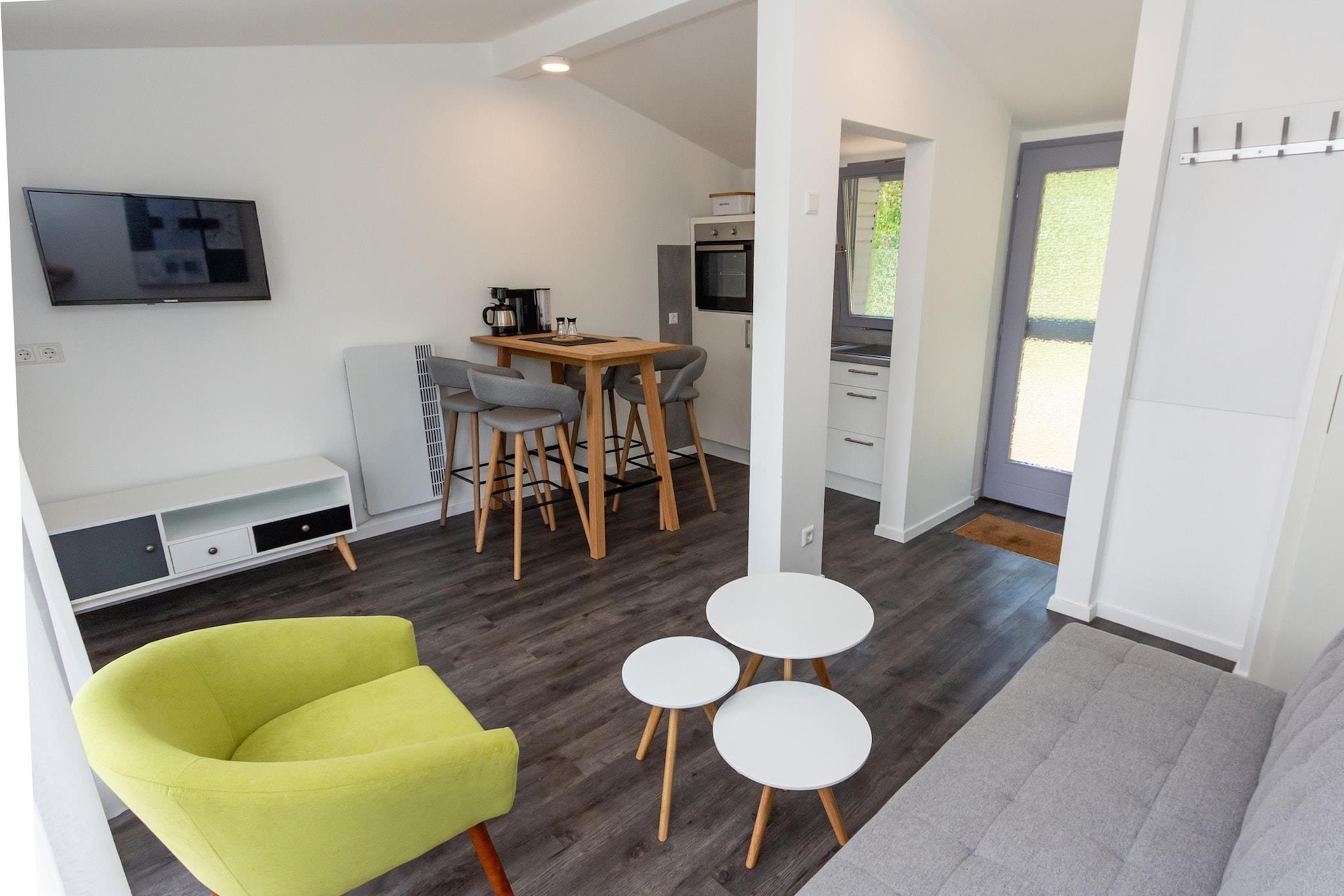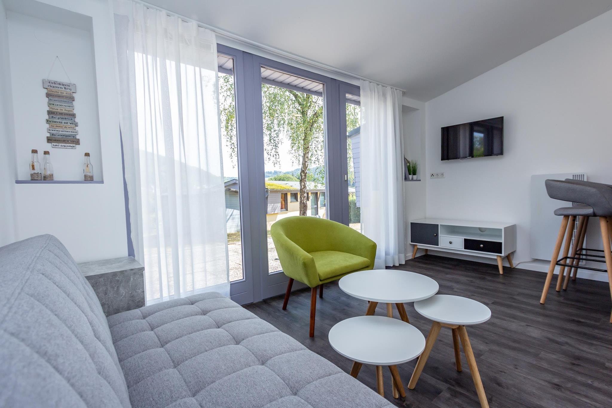 Denne indbydende bungalow med 2 soveværelser til op til fire gæster ligger i Waxweilers bjergskråning og tilbyder en fredelig oase med en solrig terrasse og et fuldt udstyret køkken. Det hyggelige soveværelse og køjesengsværelset gør det ideelt for familier, mens den rummelige opholdsstue og det moderne badeværelse sikrer komfort under hele dit ophold. Uanset om du foretrækker at spise selv eller spise ude, byder området på masser af kulinariske muligheder. Waxweiler ligger i den naturskønne tysk-luxembourgske naturpark og er en charmerende landsby nær grænsetrekanten mellem Tyskland, Belgien og Luxembourg. Det er et paradis for naturelskere og aktive rejsende, med vandre- og cykelstier, der starter lige uden for døren. Om sommeren... Familier vil sætte pris på det indendørs legehus, den udendørs legeplads og den sæsonåbne hoppeborg. Bemærk venligst: Bungalowen er udelukkende reserveret til private og turistophold og er ikke tilgængelig for bygge- eller montagearbejdere. Swimmingpool (deles med andre gæster, åben fra maj til og med september).