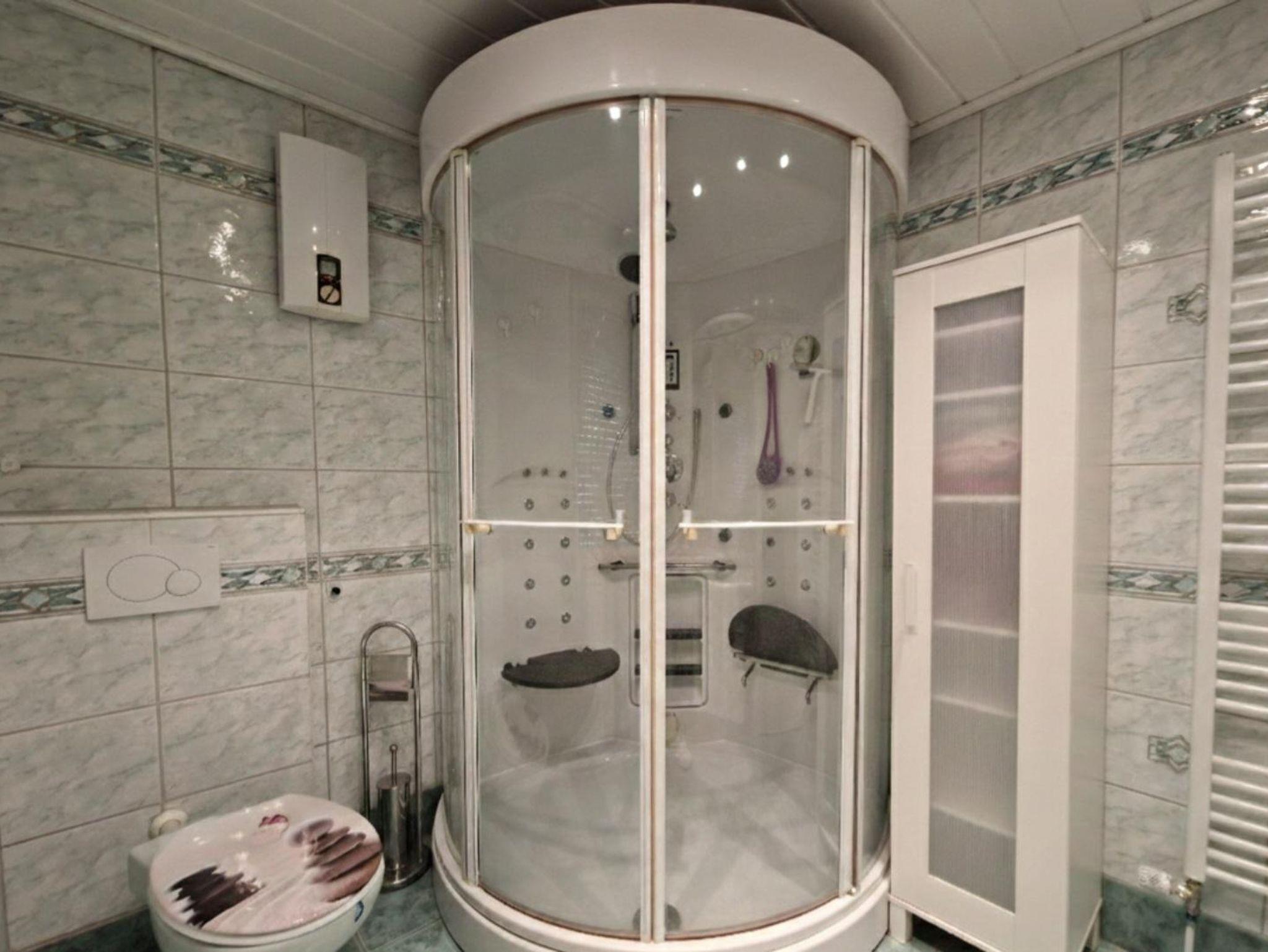 Die beiden Schlafräume sind mit einem Doppel- und zwei Einzelbetten ausgestattet, zusätzlich befindet sich im Wohnzimmer ein Schlafsofa. Bettwäsche sowie Handtücher werden bereitgestellt. Das Badezimmer mit Dampfdusche sorgt für zusätzlichen Komfort. Für längere Aufenthalte steht auch eine Waschmaschine zur Verfügung, sodass Sie alles Notwendige erledigen können.