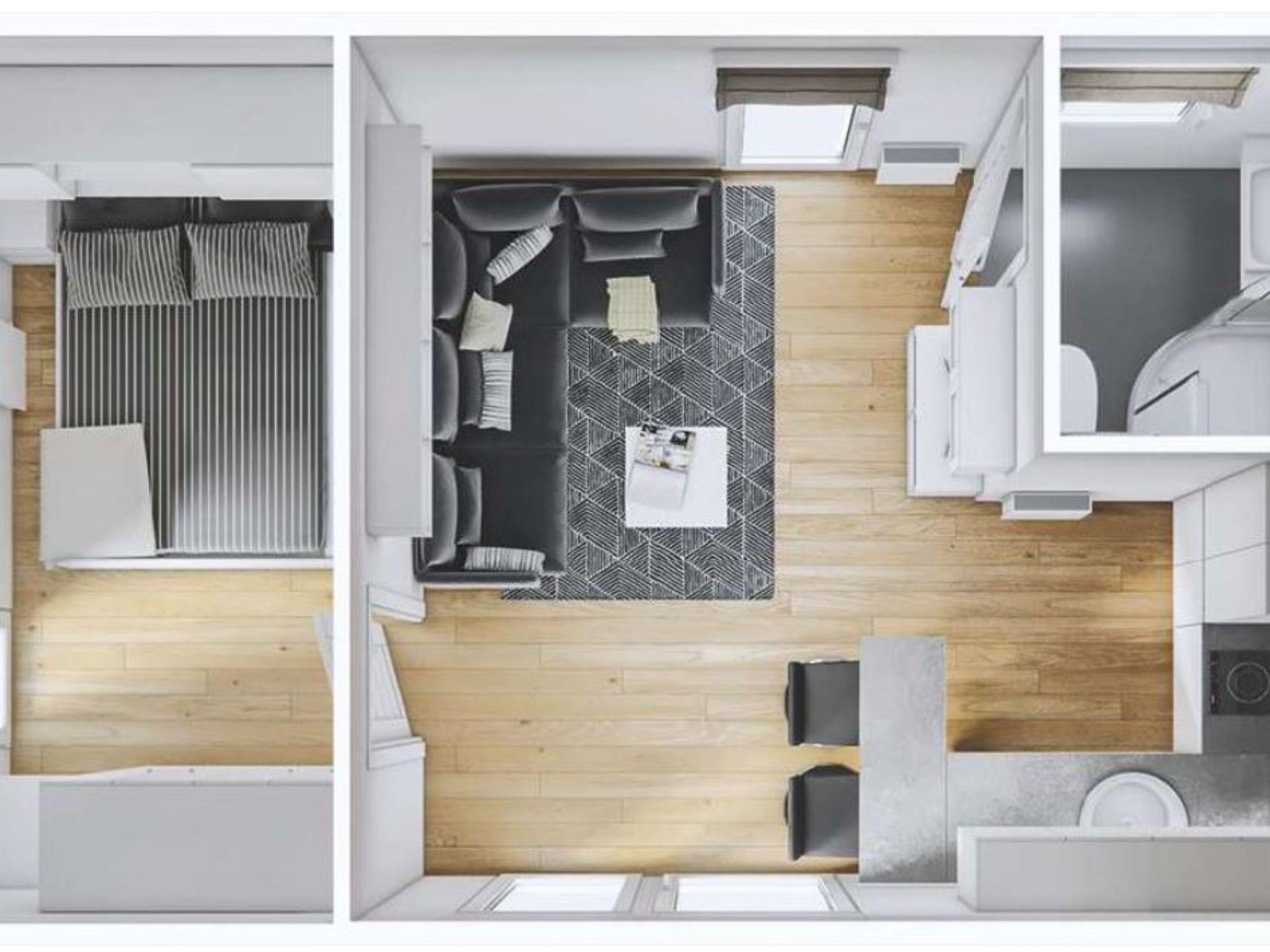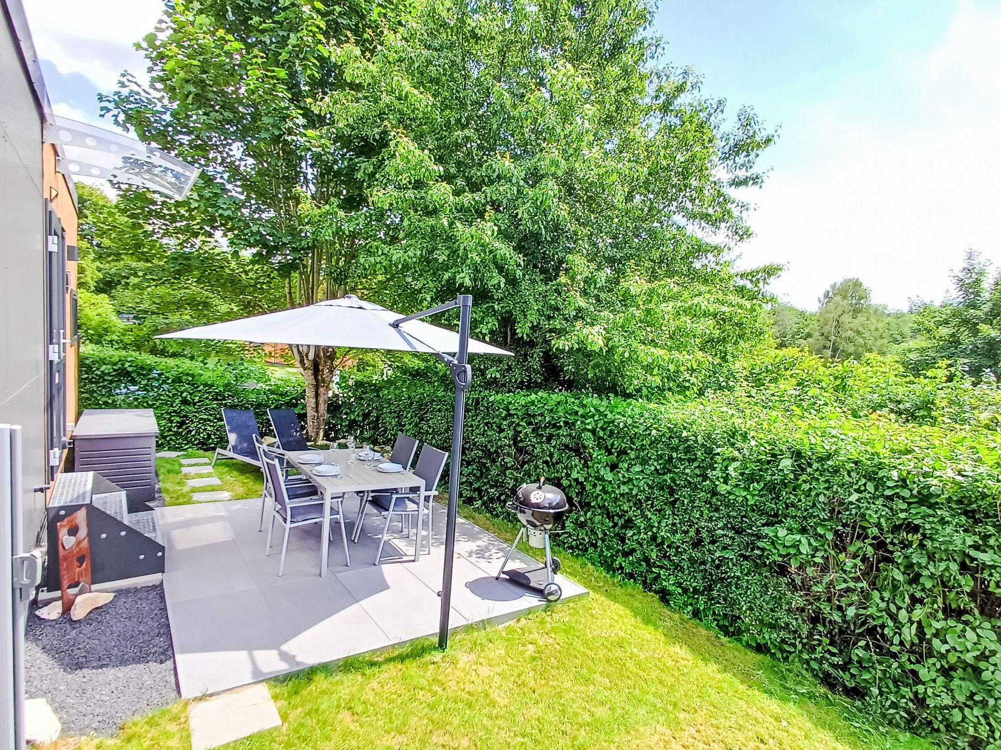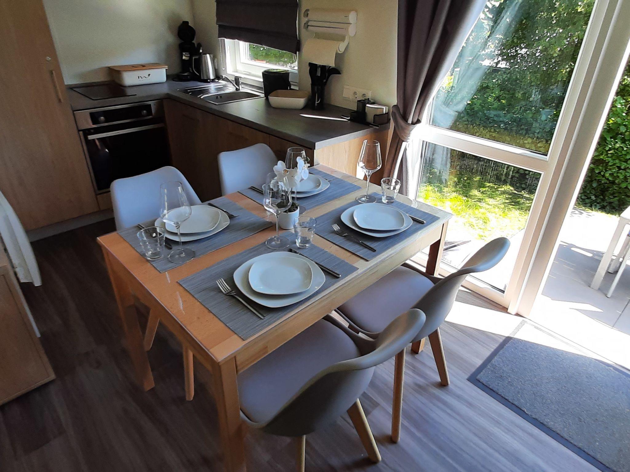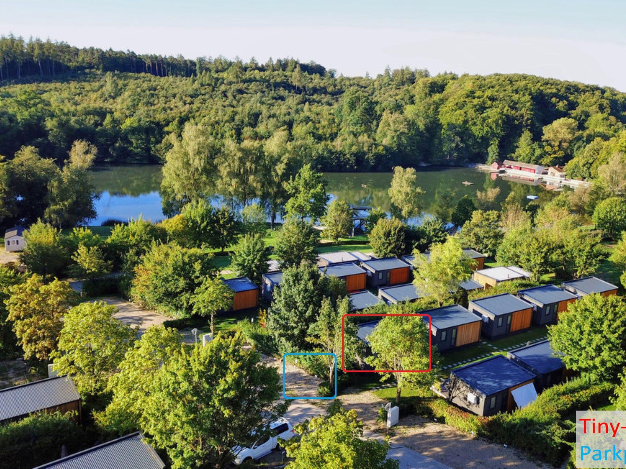"Tiny Haus am Waldsee", 2-room mobile home 25 m2. Object suitable for 2 adults + 2 children. Cosy furnishings: living/sleeping room with 1 double sofabed (135 cm, length 190 cm), dining table and satellite TV (flat screen). Exit to the terrace. 1 room with 1 french bed (140 cm, length 200 cm). Open kitchen (2 induction hot plates, toaster, kettle, microwave). Shower/WC. Electric heating, air-conditioning. Terrace. Terrace furniture, barbecue, deck chairs (2). Facilities: hair dryer. Internet (WiFi, free). Parking (1 car) at 10 m. Please note: non-smoking house. Smoke alarm. Senseo coffee machine.