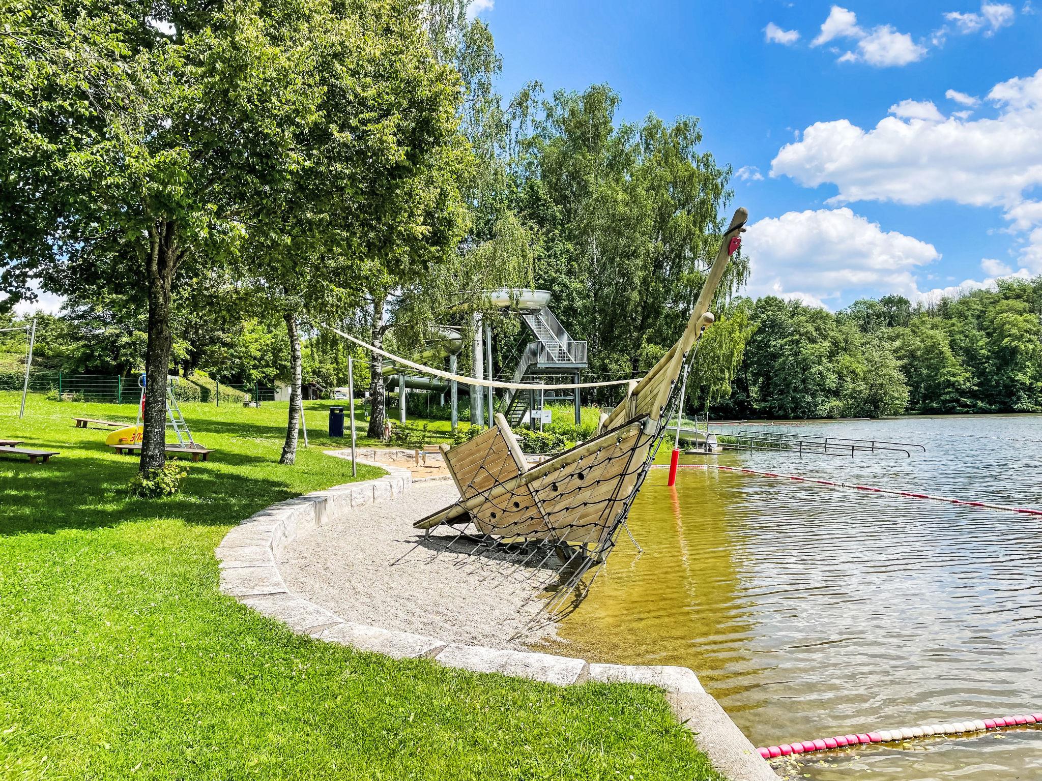 Resort "Campingpark Wemding". 50 houses in the resort. Outside the resort, 2 km from the centre of Wemding, 50 m from the lake. For shared use: slide, outdoor shower, beach volleyball, children's playground, bathing place. In the complex: WiFi, kiosk. 400 m long motor access to the house. Central parking spaces. Supermarket 2 km, restaurant 2 km, bus stop "Johannisgraben-Wemding" 2.2 km, railway station "Nördlingen" 20 km, thermal baths "Treuchtlingen" 21 km. Tennis 1 km, minigolf 50 m, riding stable 1 km, ice rink 500 m. Nearby attractions: Nördlingen / Rieskrater-Museum 19 km, Dinkelsbühl 43 km, Legoland Günzburg 80 km, Playmobil-FunPark bei Nürnberg 100 km, Augsburg 70 km, München 130 km. Well-known lakes can easily be reached: Altmühlsee 35 km, Brombachsee 40 km. Please note: suitable for families. Residence with electric gates. Access to the house only possible between 7 am and 10 pm. Dogs are not allowed on the beach and sunbathing lawn. Kiosk only open from mid may to mid september.