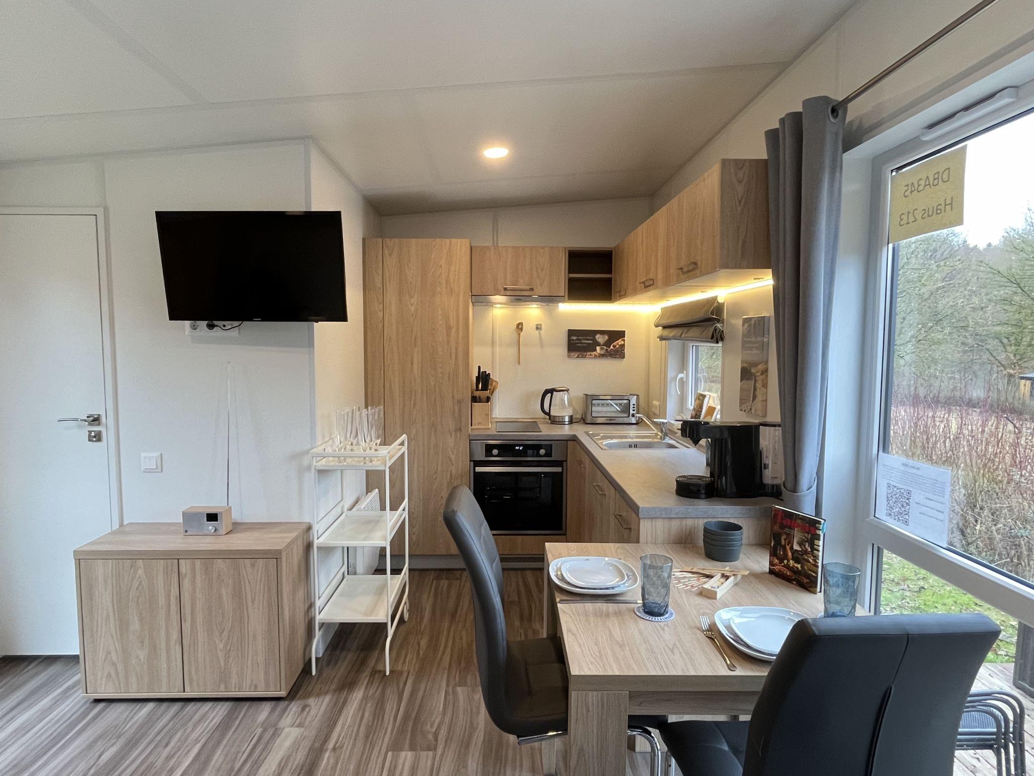 "Tanjas Tiny Haus", 2-room mobile home 25 m2, on the ground floor. Object suitable for 2 adults + 2 children. Cosy furnishings: living/sleeping room with 1 double sofabed (120 cm, length 200 cm), satellite TV. Exit to the terrace. 1 room with 1 french bed (140 cm, length 200 cm). Open kitchen (2 induction hot plates, toaster, kettle, electric coffee machine). Shower/WC. Electric heating, air-conditioning. Terrace. Terrace furniture. Facilities: baby cot. Parking (1 car) at 30 m. Please note: non-smoking house. Maximum 1 pet/ dog allowed. Smoke alarm. ATTENTION: The WiFi connection may be limited depending on capacity.