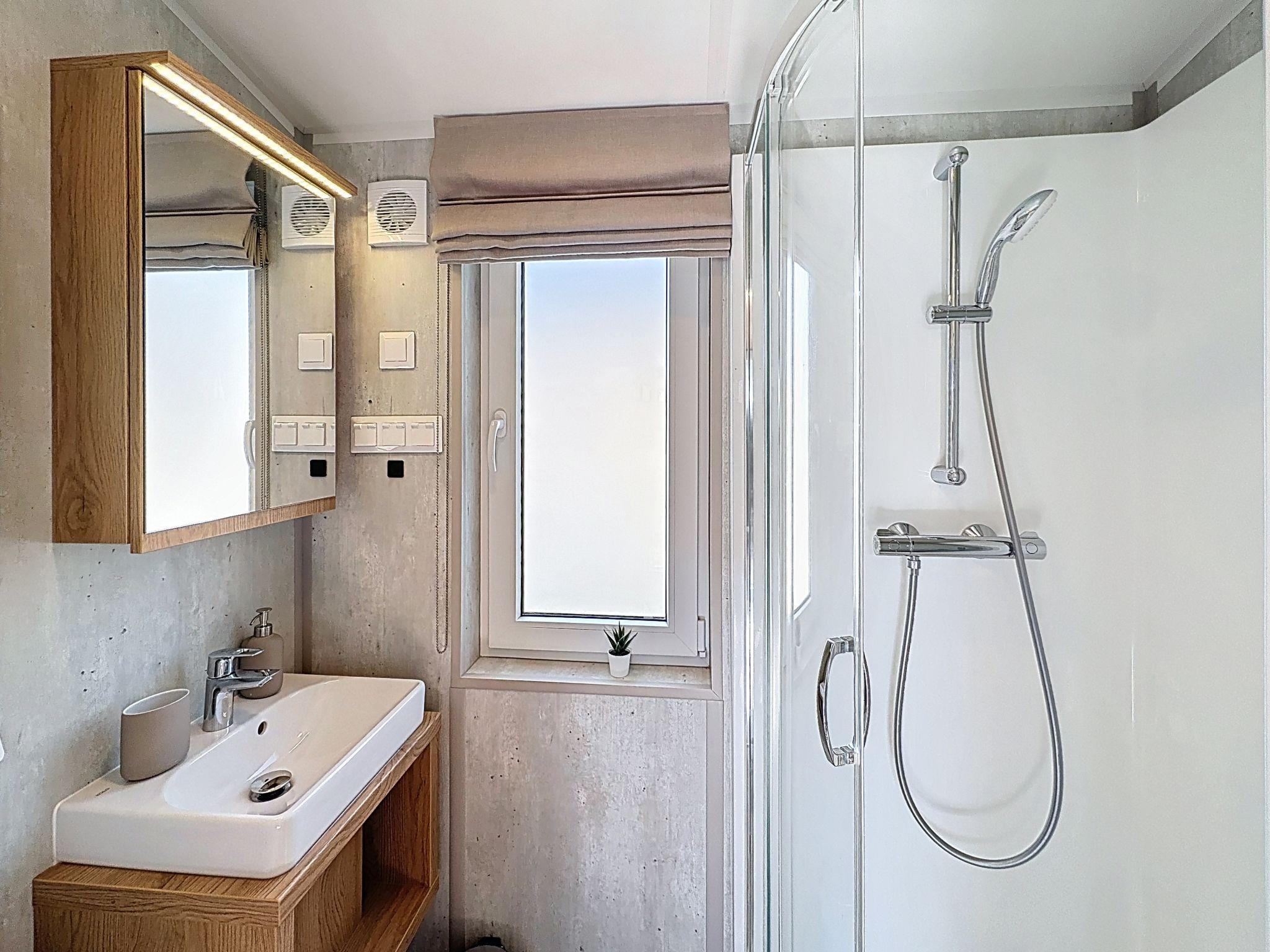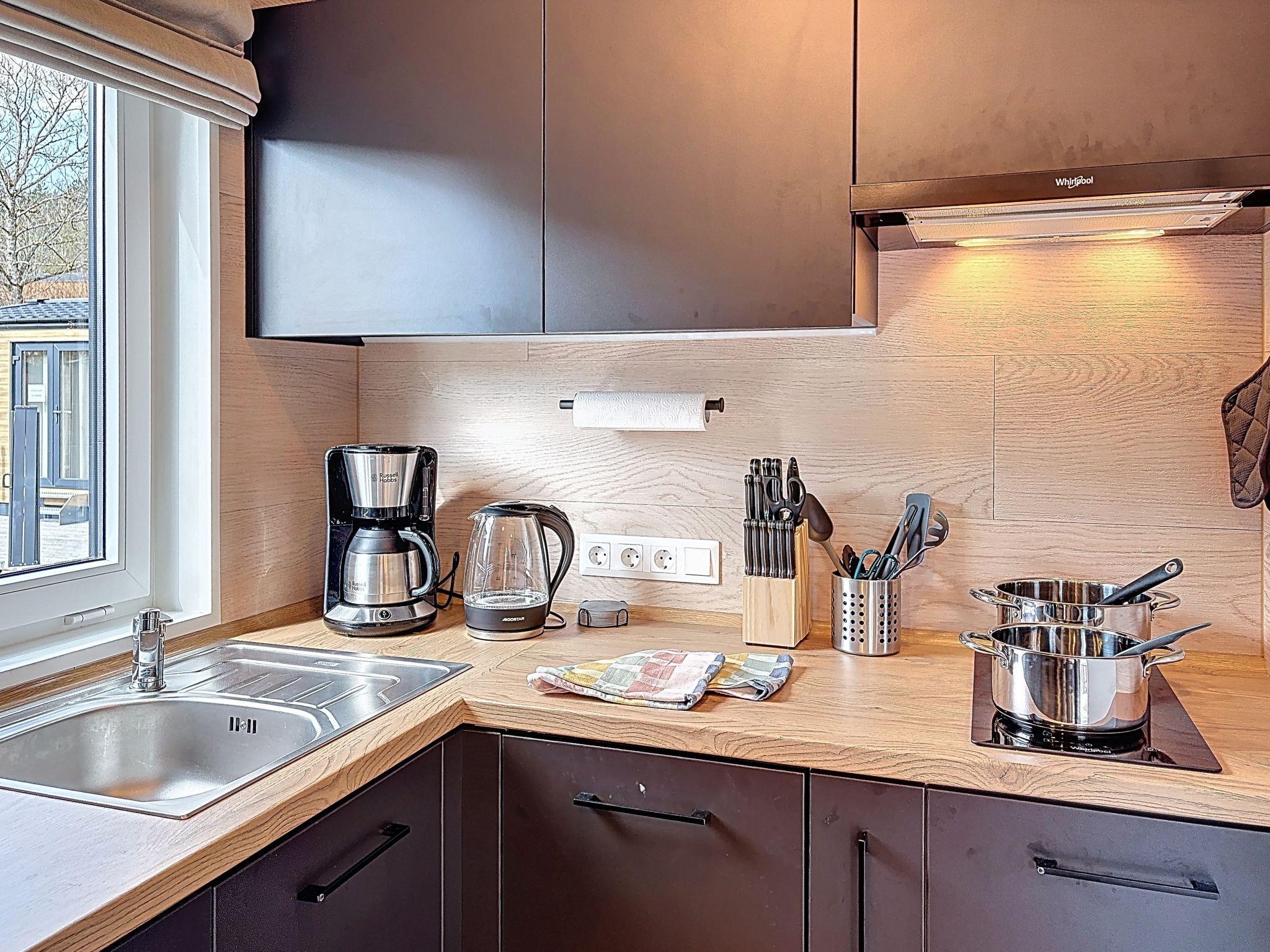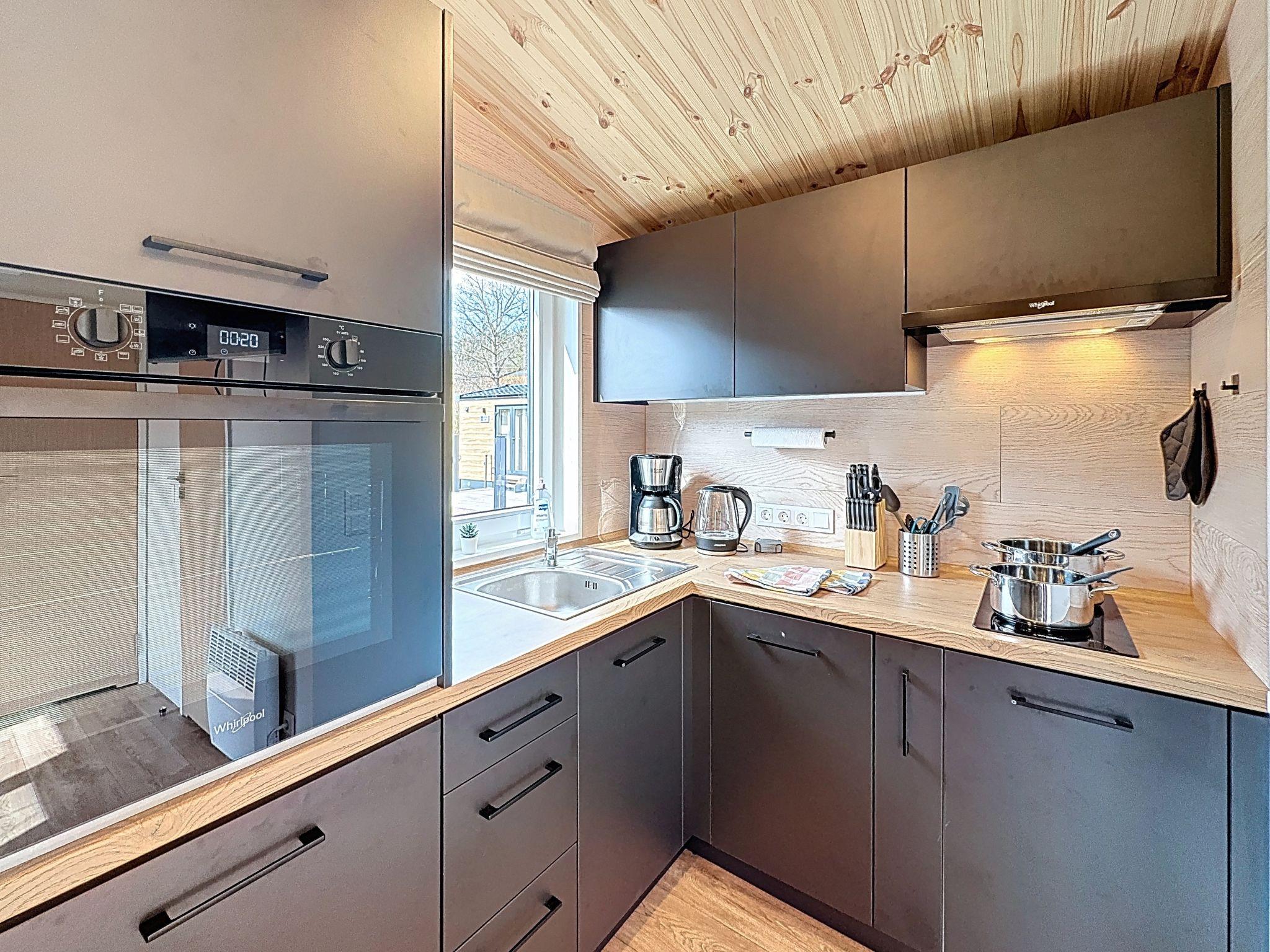 "Tiny Haus See-Koje", 3-room mobile home 28 m2, on the ground floor. Cosy furnishings: living/dining room with dining table and satellite TV (flat screen). Exit to the terrace. 1 room with 1 double bed (140 cm, length 200 cm). 1 room with 2 beds (80 cm, length 200 cm). Kitchenette (oven, dishwasher, 2 induction hot plates, kettle, electric coffee machine). Shower/WC. Electric heating. Terrace. Terrace furniture, electric barbecue (portable). Parking (1 car). Please note: non-smokers only. Smoke alarm. Note: The Wi-Fi connection may be limited depending on capacity.