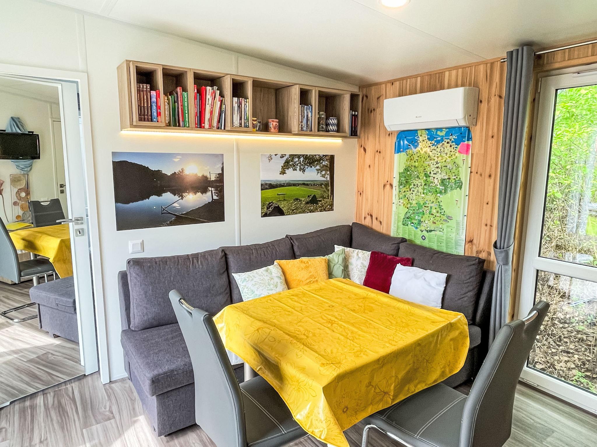 "Tiny Haus Conny", 2-room mobile home 25 m2. Object suitable for 2 adults + 2 children. Cosy furnishings: living/sleeping room with 1 double sofabed and satellite TV. Exit to the terrace. 1 room with 1 french bed (140 cm, length 200 cm). Open kitchen (2 induction hot plates, toaster, kettle, electric coffee machine). Shower/WC. Electric heating, air-conditioning. Terrace furniture. Parking at the house. ATTENTION: The Wi-Fi connection may be limited depending on capacity.