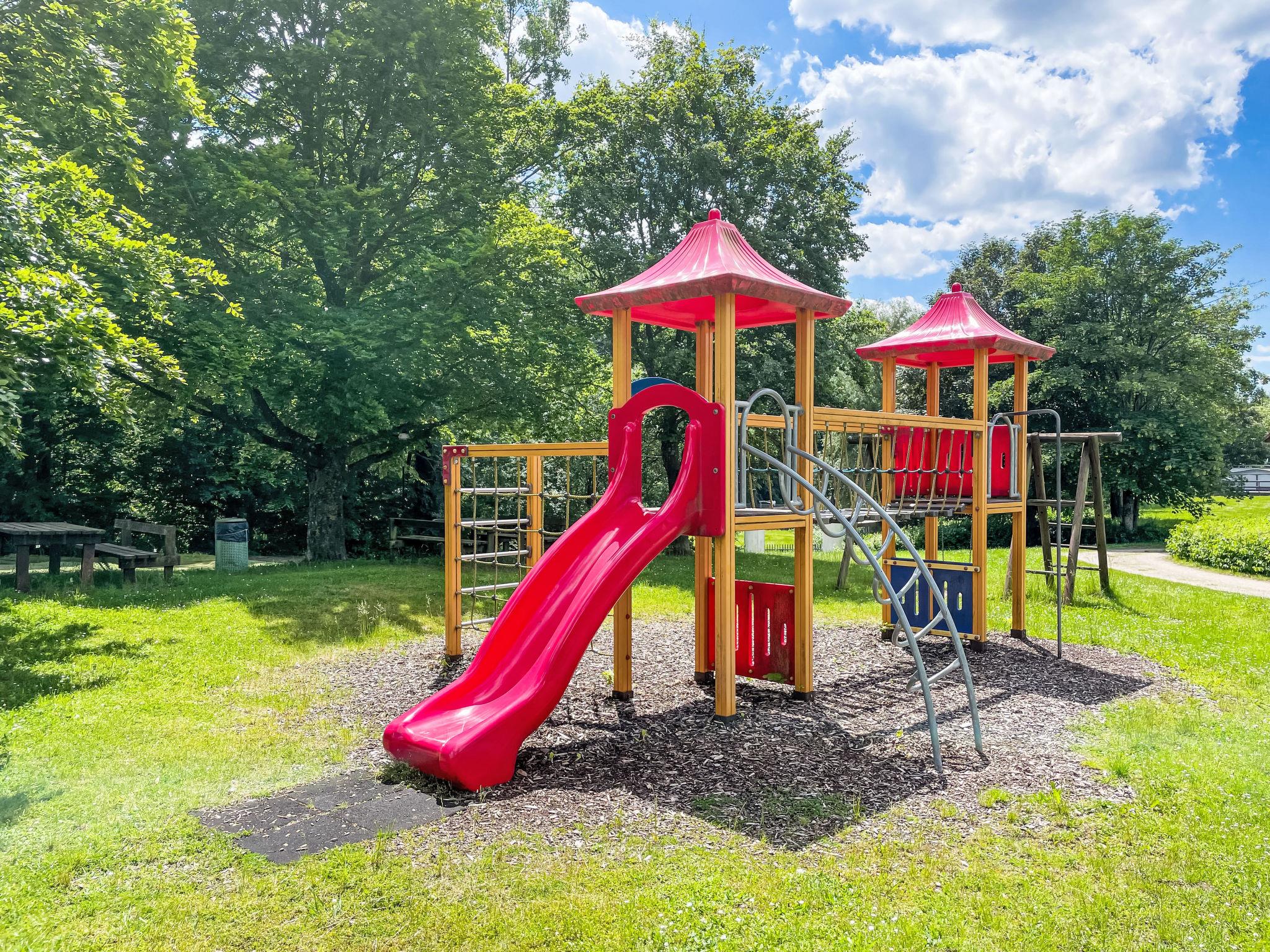 Resort "Campingpark Wemding". 50 houses in the resort. Outside the resort, 2 km from the centre of Wemding, 50 m from the lake. For shared use: slide, outdoor shower, beach volleyball, children's playground, bathing place. In the complex: WiFi, kiosk. 400 m long motor access to the house. Central parking spaces. Supermarket 2 km, restaurant 2 km, bus stop "Johannisgraben-Wemding" 2.2 km, railway station "Nördlingen" 20 km, thermal baths "Treuchtlingen" 21 km. Tennis 1 km, minigolf 50 m, riding stable 1 km, ice rink 500 m. Nearby attractions: Nördlingen / Rieskrater-Museum 19 km, Dinkelsbühl 43 km, Legoland Günzburg 80 km, Playmobil-FunPark bei Nürnberg 100 km, Augsburg 70 km, München 130 km. Well-known lakes can easily be reached: Altmühlsee 35 km, Brombachsee 40 km. Please note: suitable for families. Residence with electric gates. Access to the house only possible between 7 am and 10 pm. Dogs are not allowed on the beach and sunbathing lawn. Kiosk only open from mid may to mid september.