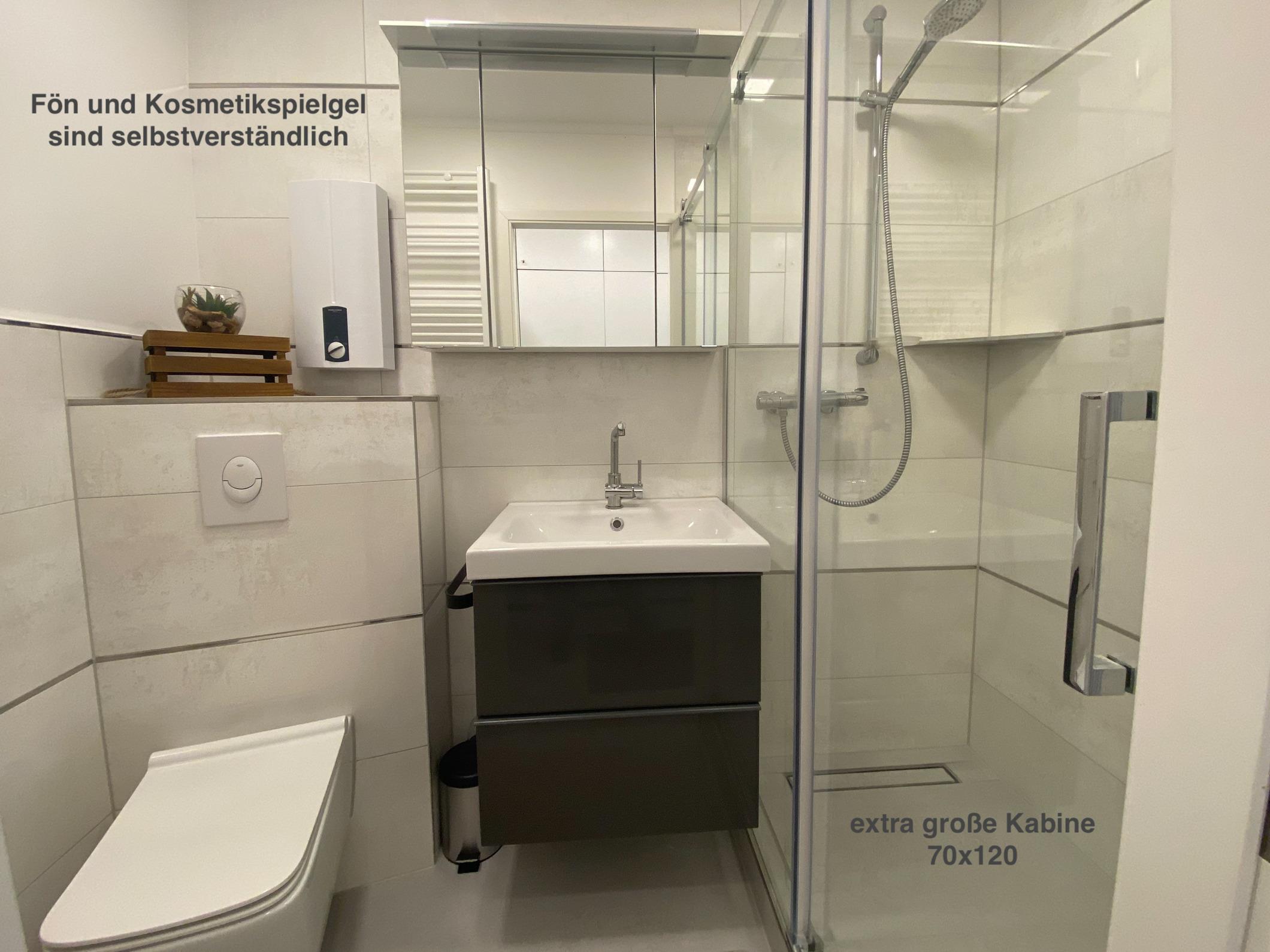 In dem modernen Duschbad mit extra großer Duschkabine fängt der Tag gut an. Und die schicke Einbauküche ist prima ausgestattet mit reichlich Geschirr, Induktionsfeld, Backofen, Kühlschrank (getrennter Gefrierschrank) und Kaffeemaschine (1 x klassisch, 1 x Dolce Gusto). Der im Flur befindliche Einbauschrank bietet viel Platz für Ihre persönlichen Dinge. Diverse Bücher und Spiele runden die Ausstattung ab.
