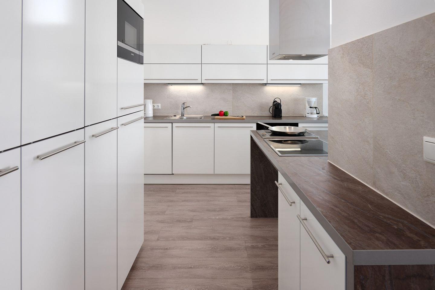 Das Penthouse empfängt dich mit einem traumhaften, offenen Küchen-, Ess- und Wohnbereich mit großer, bodentiefer Fensterfront. Der Ausblick ist einfach beeindruckend, entspannend und wunderschön!