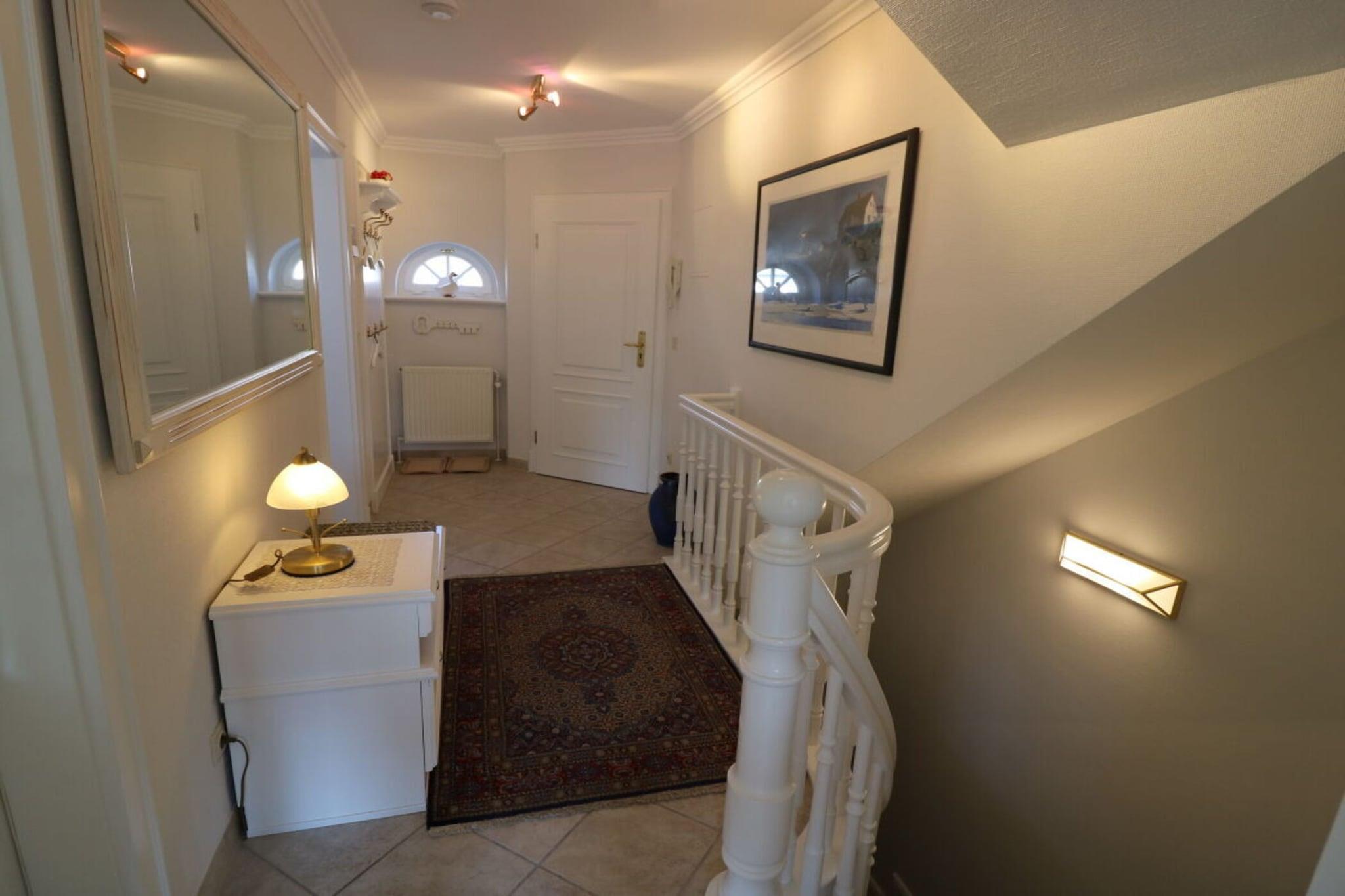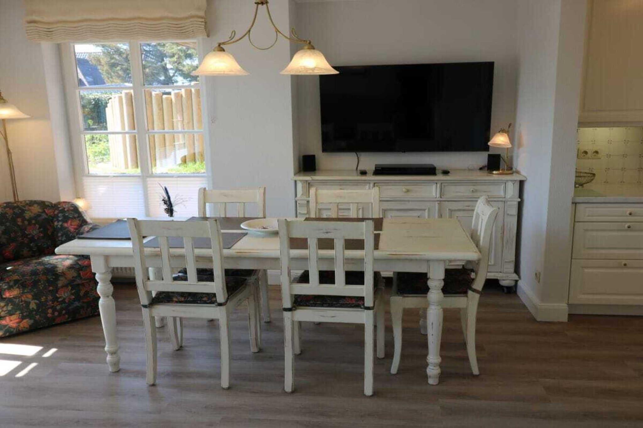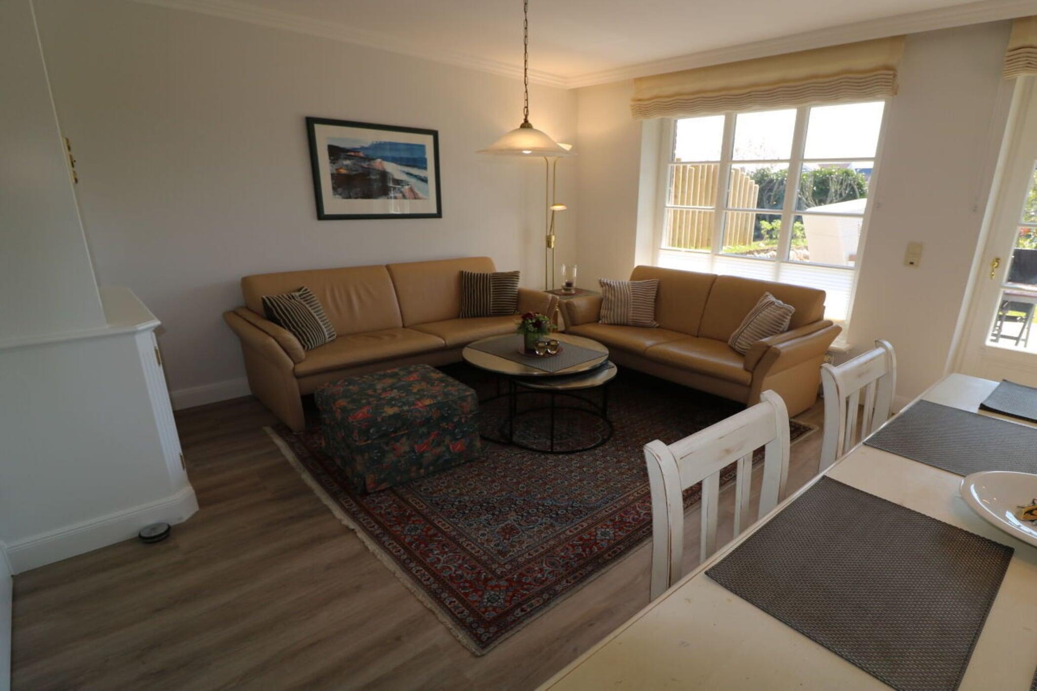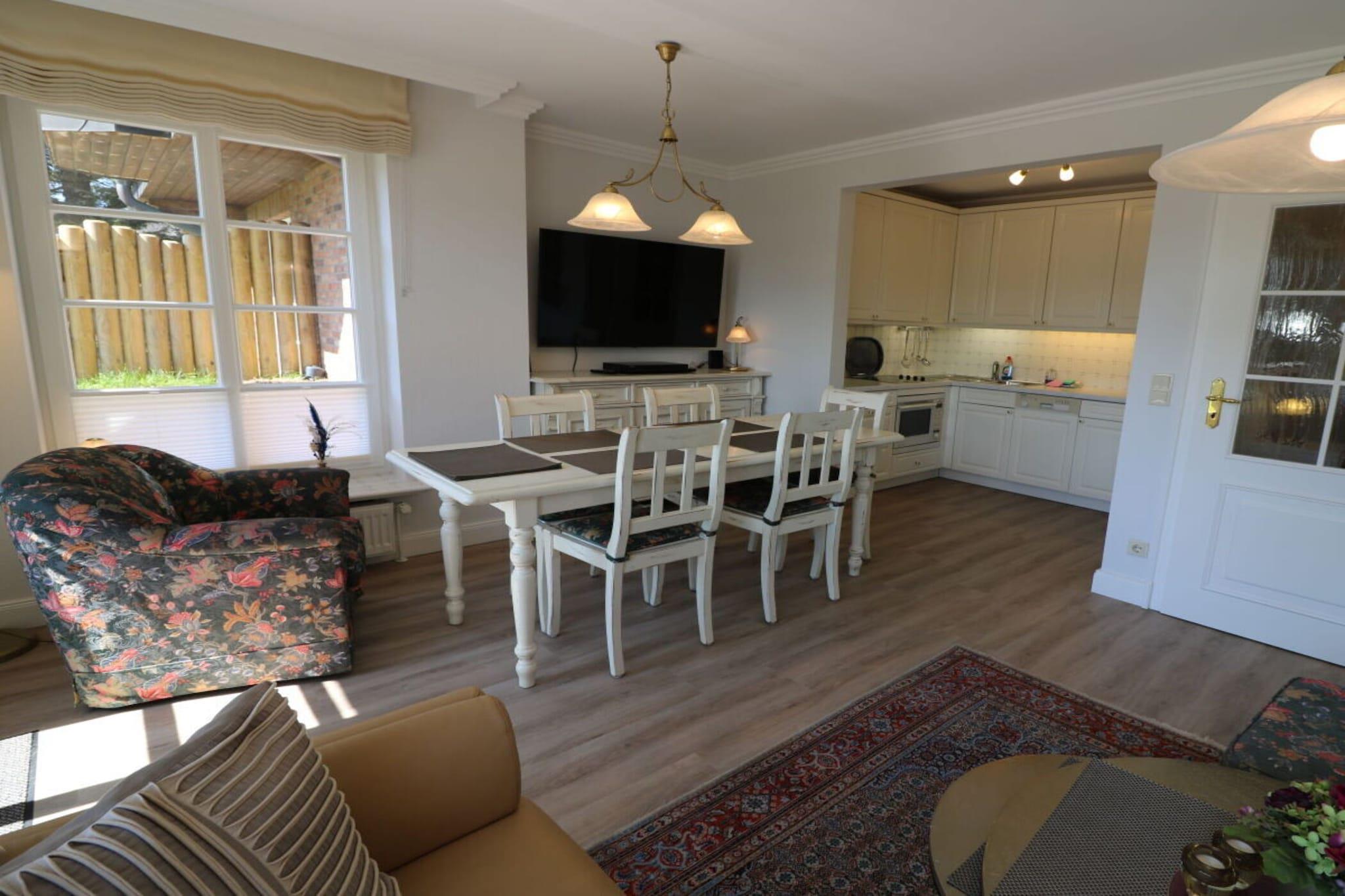 Den 87 kvm store 4-værelses lejlighed i stueetagen for op til 5 personer inkluderer: En stor stue (sidde- og spiseplads) med udgang til den sydvendte terrasse, som inviterer dig til at slappe af med en strandstol og havemøbler, et køkken i frisisk stil og et enkelt soveværelse. Efter en totalrenovering skinner lejligheden i ny pragt. I kælderen finder du 1 soveværelse med dobbeltseng, 1 soveværelse med 2 enkeltsenge og 2 brusebad/toilet. Tilbring en afslappende ferie på Sild. Vi ser frem til dit besøg!