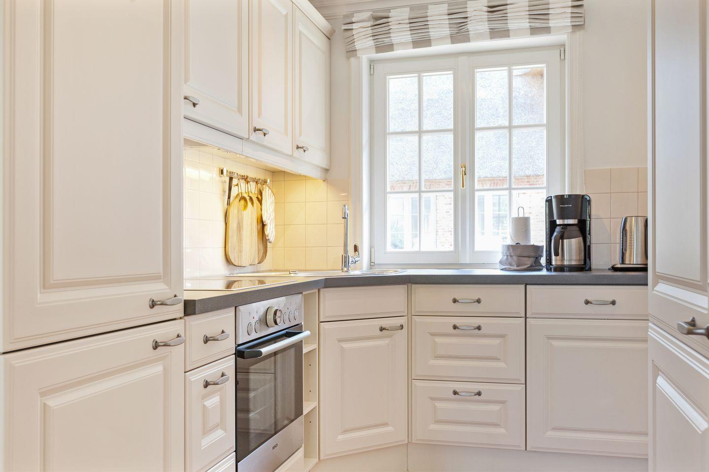 Die schöne Essecke finden Sie in einem kuscheligen Erker. Eine überkomplette technische Ausstattung mit Flat-TV, Heimkino-BOSE Sound, WLAN etc. versteht sich von selbst. Ihre Luxusküche ist in den Wohnbereich integriert und bietet alles, um auch ambitioniertere Hobbykochherzen höher schlagen zu lassen.