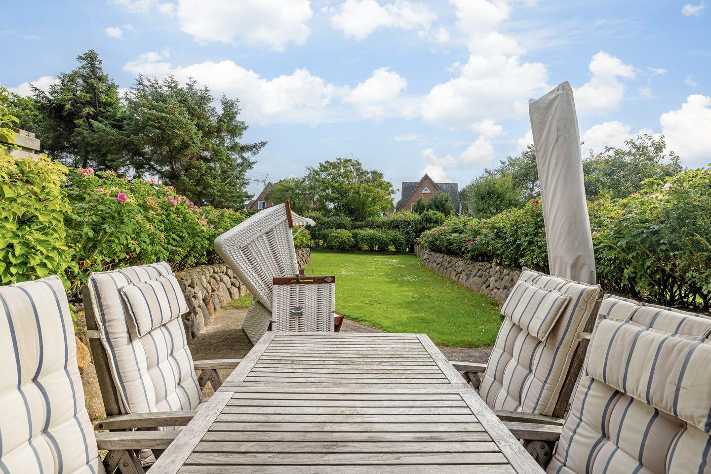 Ankommen und rundum Wohlfühlen. Freuen Sie Sich auf stilvolles Wohnen in einmaliger und ruhiger Lage am Wenningstedter Dorfteich. Friesischer Stil wird modern interpretiert. Warme Farben, hochwertige Materialien und eine luxuriöse Ausstattung erwarten Sie. Dank der Südausrichtung genießen Sie auf der großzügigen Terrasse ebenso viel Sonne wie in Ihrem weitläufigen, privaten Garten. Urlaub zum Entspannen und Wohlfühlen wartet auf Sie!