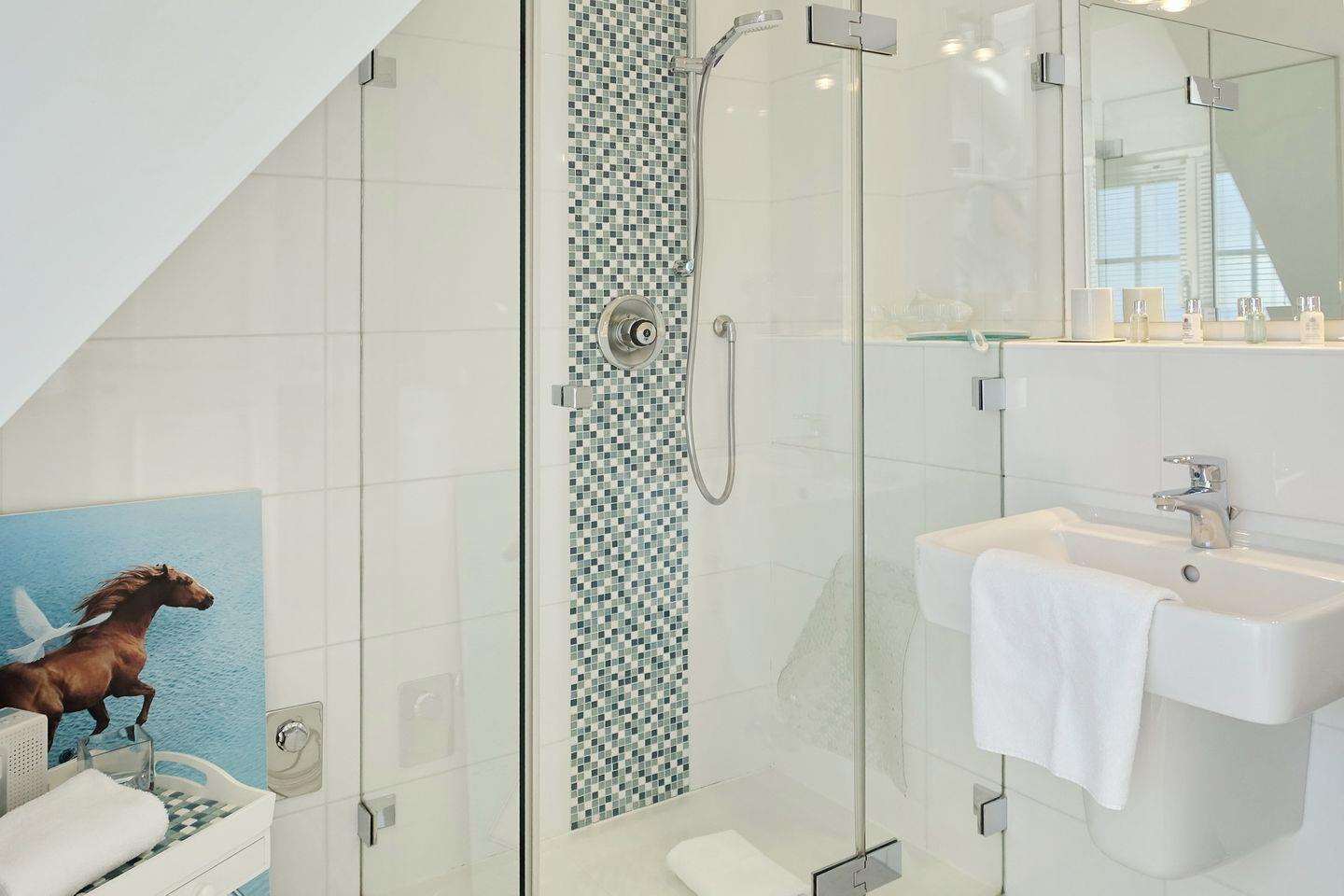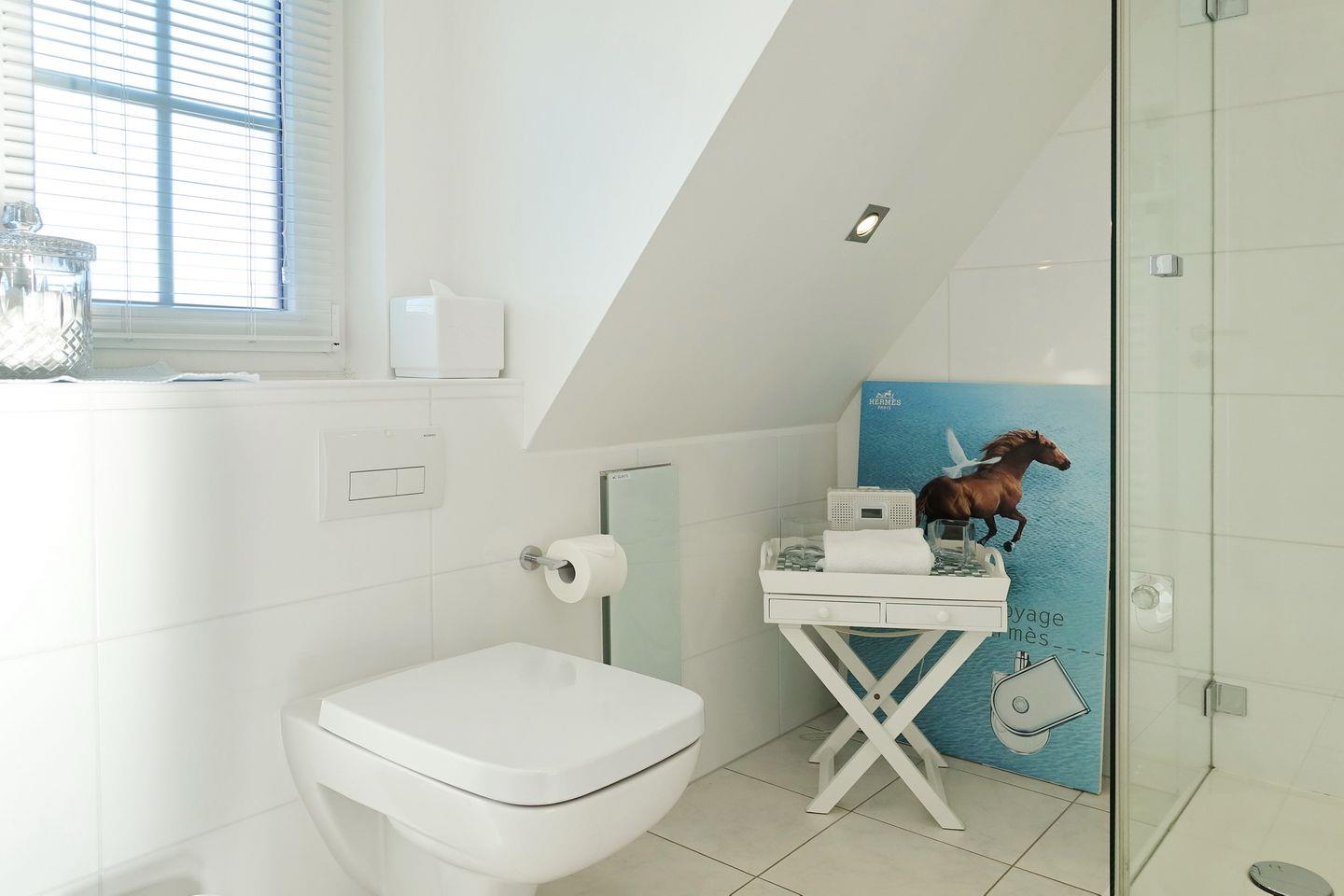 Das Appartement 4 erwartet Sie mit einer maritimen Ausstattung und hellen Räumen. Im Wohnraum können Sie sich auf der Couch entspannen, im kleinen Essbereich schlemmen oder auf den Süd-Balkon hinaustreten, der Ihnen bis in die Abendstunden Sonne bietet. Die Küche ist offen gestaltet, modern eingerichtet und voll ausgestattet. Auf gleicher Ebene befindet sich Ihr Wohlfühlbad mit Dusche und WC. Im Dachgeschoss der Wohnung finden Sie einen weiteren Raum mit Doppelbett (180x200cm) und einem kleinen Flatscreen-TV.