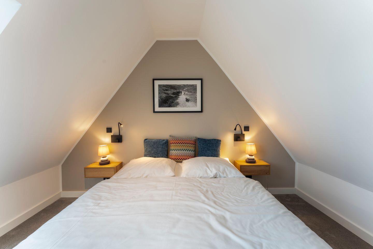 Das separate Schlafzimmer verwöhnt Sie mit einem gemütlichen Doppelbett (160x200 cm), Flat-TV. Ein Ort zum Träumen und Auftanken, begleitet vom sanften Rauschen der Nordsee.