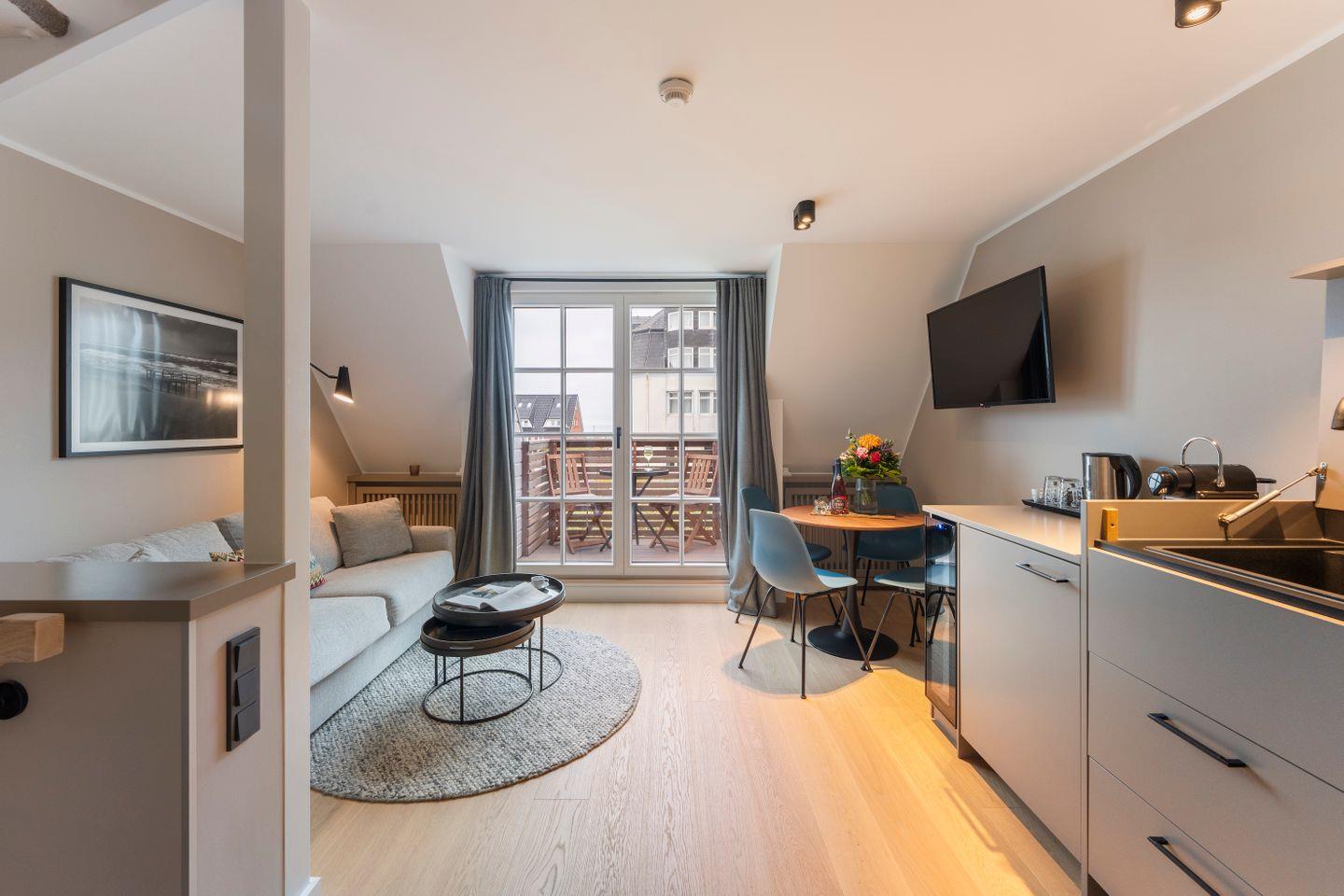 Diese charmante Ferienwohnung auf zwei Ebenen vereint stilvolles Design mit perfekter Lage. Auf rund 47 m² bietet sie Platz für bis zu zwei Personen – ideal für Paare, die erholsame Tage an der Nordsee verbringen möchten. Mit Meerblick, Balkon in Westausrichtung und nur wenige Schritte vom Strand entfernt, erwartet Sie hier ein ganz besonderes Urlaubserlebnis.