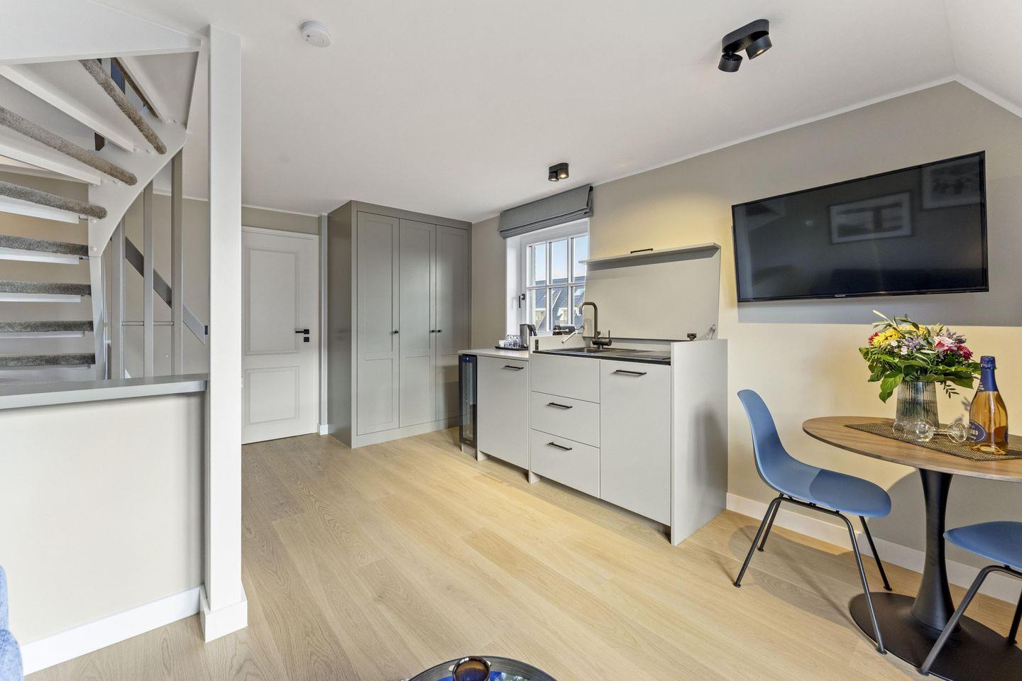 Im offen gestalteten Wohnbereich erwartet Sie eine entspannte Atmosphäre mit bequemer Schlafcouch (140x200 cm) und Flat-TV. Die harmonisch integrierte Pantry-Küche ist perfekt für kleine Mahlzeiten oder ein ausgiebiges Frühstück. Ausgestattet mit Induktionskochfeld, Weinkühlschrank, Geschirrspüler, Kühlschrank mit Gefrierfach und Nespresso-Maschine lässt sie keine Wünsche offen.