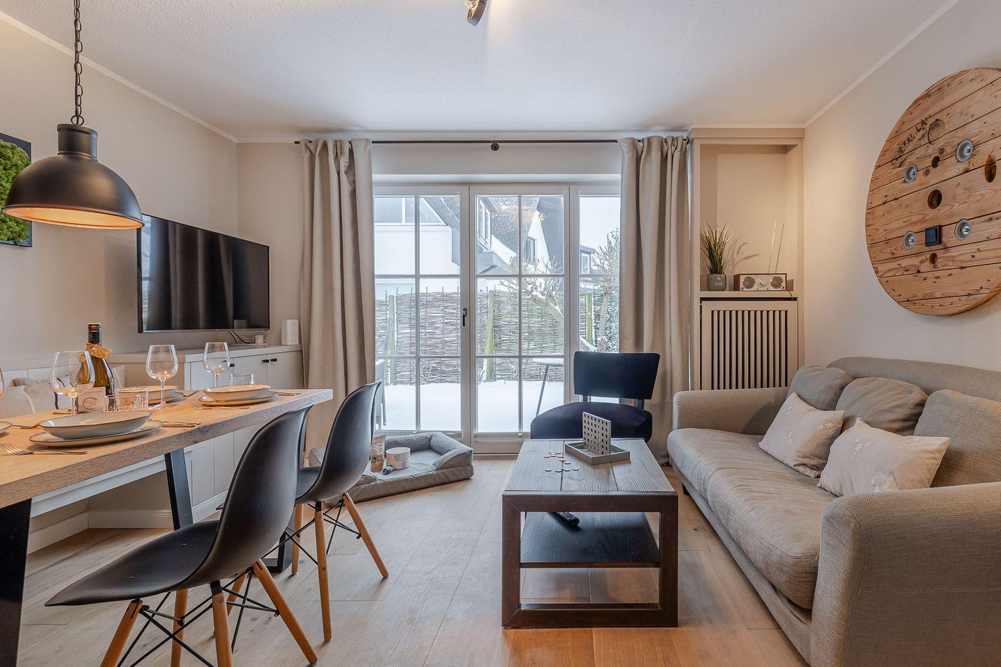 Das Küstennest empfängt einen mit genau diesem Gefühl, das man auf Sylt sucht: Ruhe, Licht und eine besondere Atmosphäre, die sofort trägt. Die Wohnung ist hochwertig gestaltet, klar im Ausdruck und gleichzeitig warm – ein Ort, der wirkt, ohne sich aufzudrängen. Der Weststrand, Cafés und kleine Läden liegen nur wenige Schritte entfernt, und doch bleibt dieses angenehme Gefühl von Rückzug und Eigenständigkeit.