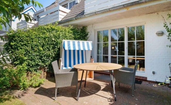 Draußen lädt die Terrasse mit Strandkorb dazu ein, zwischendurch innezuhalten – ein Platz für den ersten Kaffee, ein paar ruhige Minuten oder ein Glas Wein am Abend. Die Nordseeluft ist hier immer präsent. Auch ein gut erzogener Hund ist nach Absprache willkommen, sodass gemeinsamen Auszeiten nichts im Wege steht. Ein eigener Parkplatz direkt am Haus sorgt für entspanntes Ankommen.